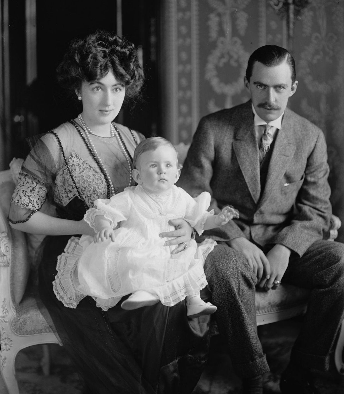 Back in Washington, the McLeans were reunited with their young son, Vinson (pictured above with his parents). But Pierre Cartier wasn’t ready to give up on his customers. He shipped the diamond to the United States and sailed back to New York (aboard the Lusitania!). He wrote to the McLeans, advising them that he’d be “honoured” to have a second appointment to show them the stone. The setting had been changed, with the blue diamond resting in a smaller diamond cluster and suspended from a diamond chain.