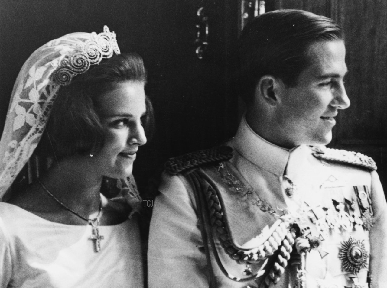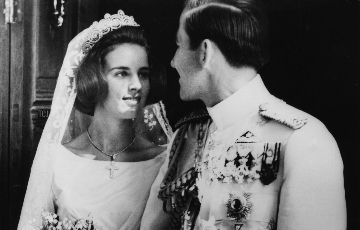 A few months after King Paul’s death in 1964, his son and heir, King Constantine II of the Hellenes, found his queen consort. He married Princess Anne-Marie of Denmark (daughter of King Frederik IX and Queen Ingrid) at the Metropolitan Cathedral in Athens in September 1964. She borrowed the Khedive of Egypt Tiara from her mother for the ceremony, starting a family tradition that has continued for two generations. (More on the wedding here!)