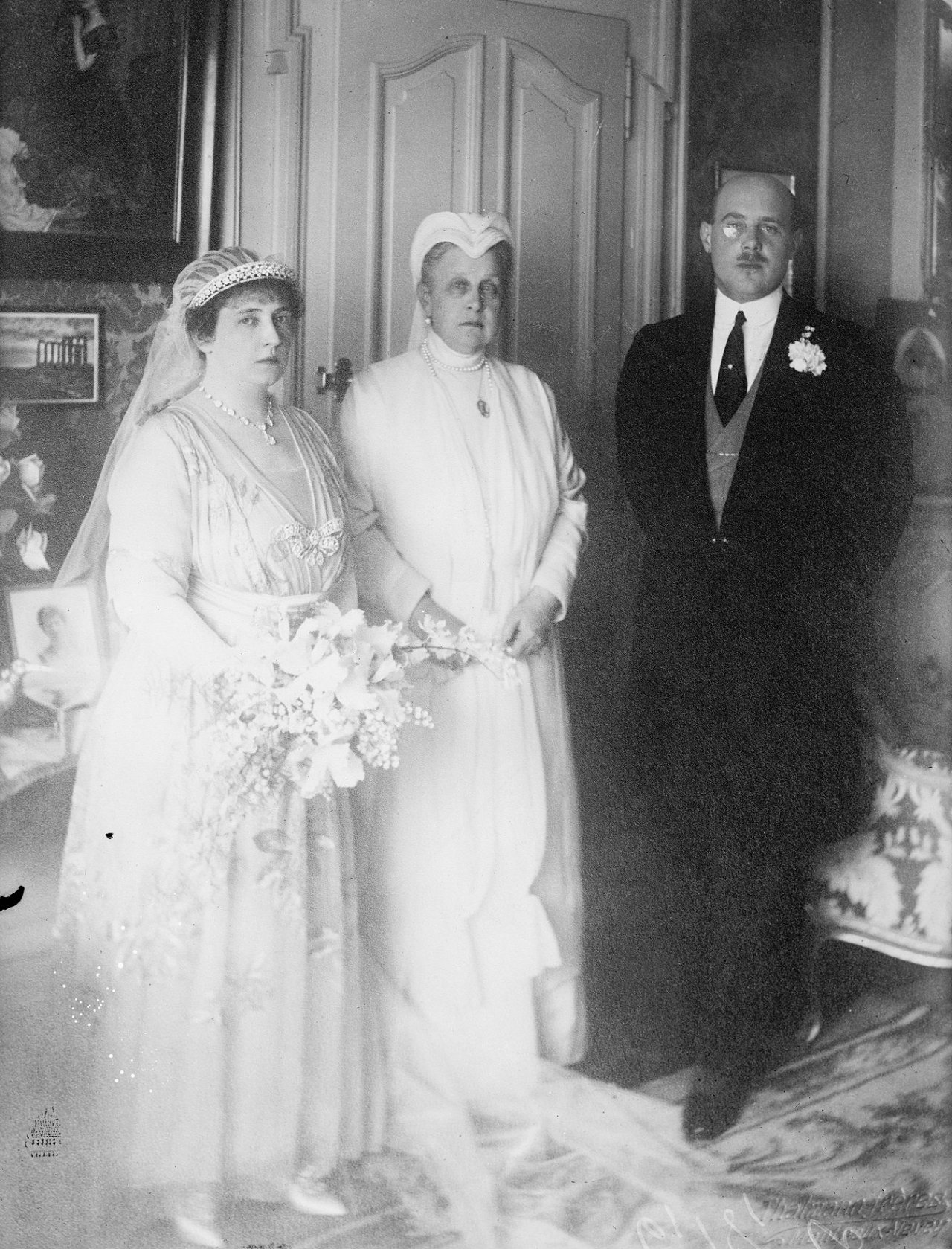 Prince Christopher of Greece and Denmark, the youngest son of King George I and Queen Olga, married the American heiress Nancy Stewart Worthington Leeds in Switzerland in February 1920. The couple had been engaged for six years. Nancy, who was known as Princess Anastasia after the wedding, wore a diamond bandeau, plus a diamond necklace and a gorgeous diamond bow brooch, for the ceremony.