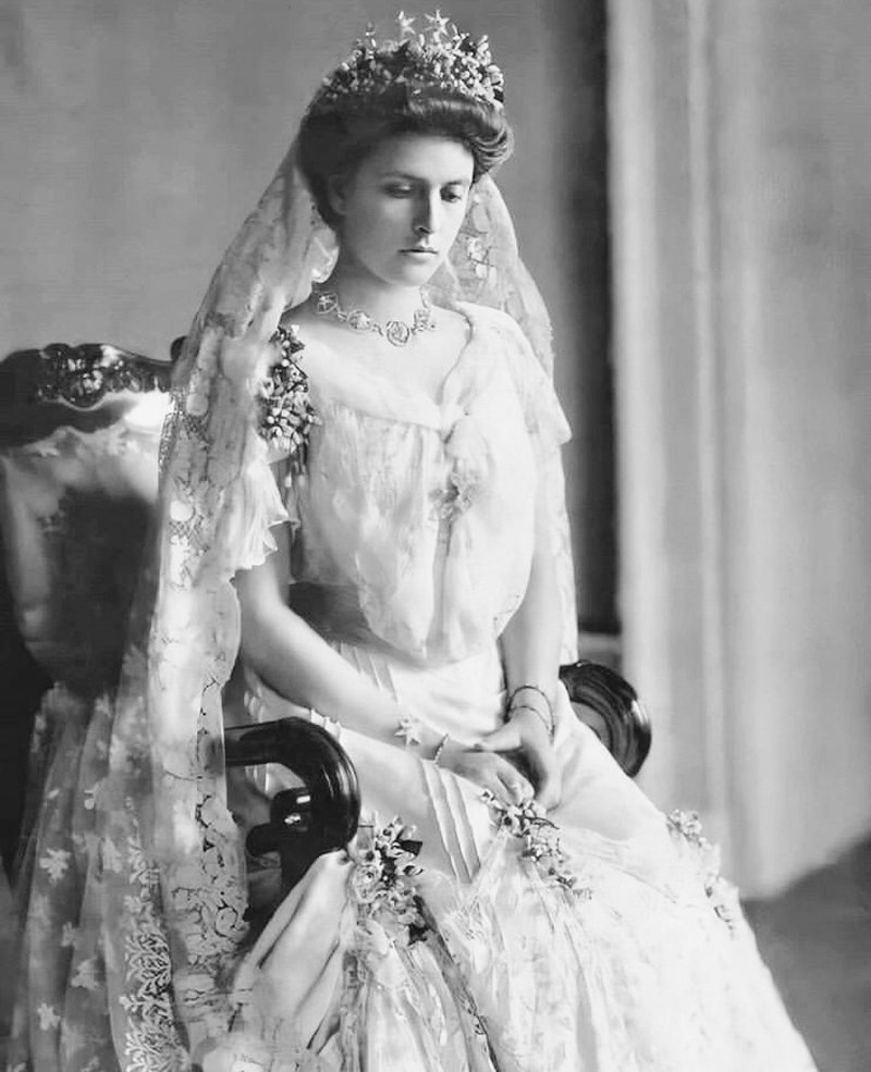 In October 1903, Prince Nicholas’s younger brother, Prince Andrew of Greece and Denmark, married Princess Alice of Battenberg in Darmstadt. The couple had met a year earlier at the coronation of her great-uncle and his aunt, King Edward VII and Queen Alexandra of the United Kingdom. For the wedding, Alice was decked out in diamond stars, including her mother’s diamond star tiara. (The tiara, sadly, was later lost in Russia during the revolution.)