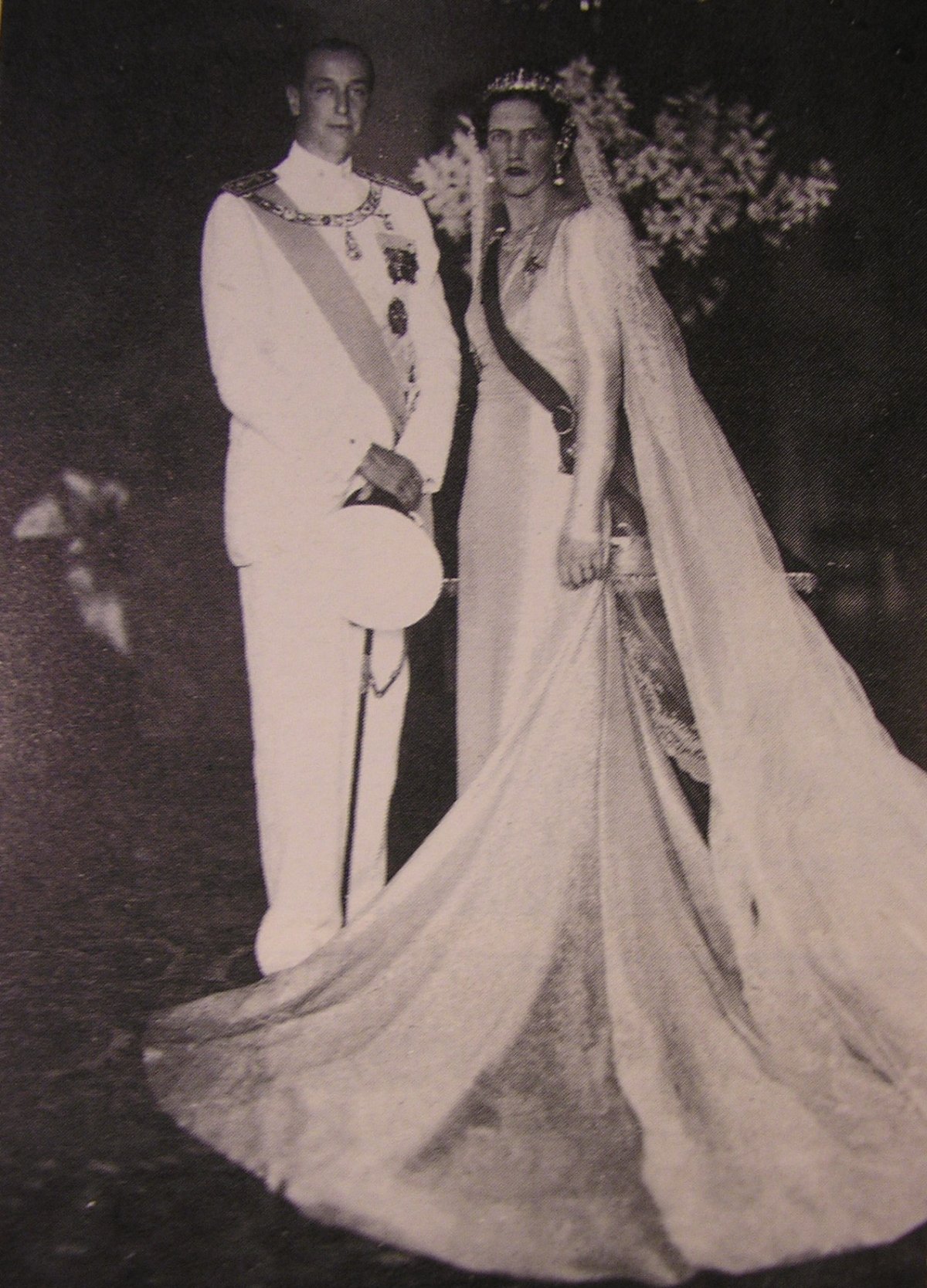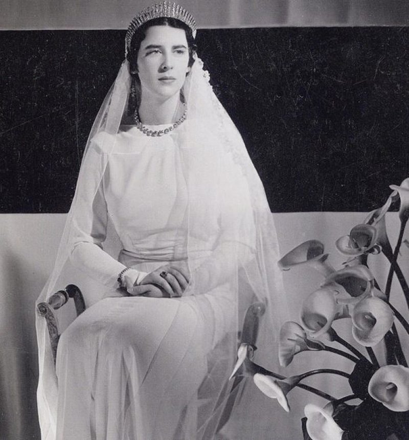 The following year, in July 1939, Princess Irene of Greece and Denmark (younger sister of Crown Prince Paul) married Prince Aimone, Duke of Aosta in Florence. She wore her own modern diamond fringe tiara for the ceremony.