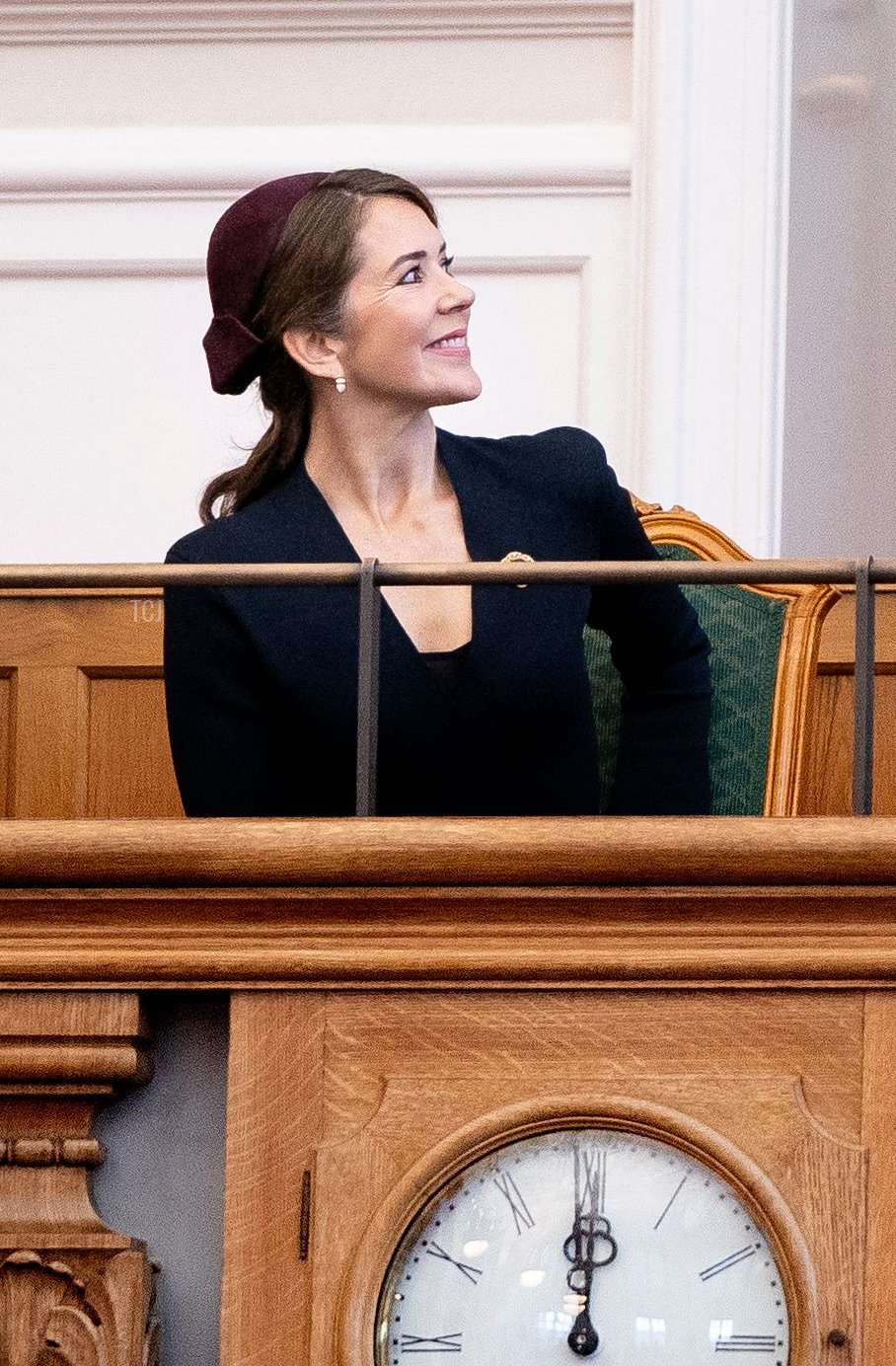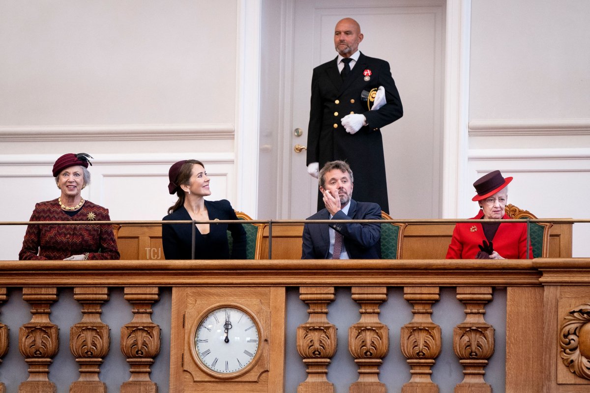 The opening of the Folketing was attended by, from left to right above, Princess Benedikte, Crown Princess Mary, Crown Princess Frederik, and Queen Margrethe II. The legislative body meets at Christiansborg Palace.