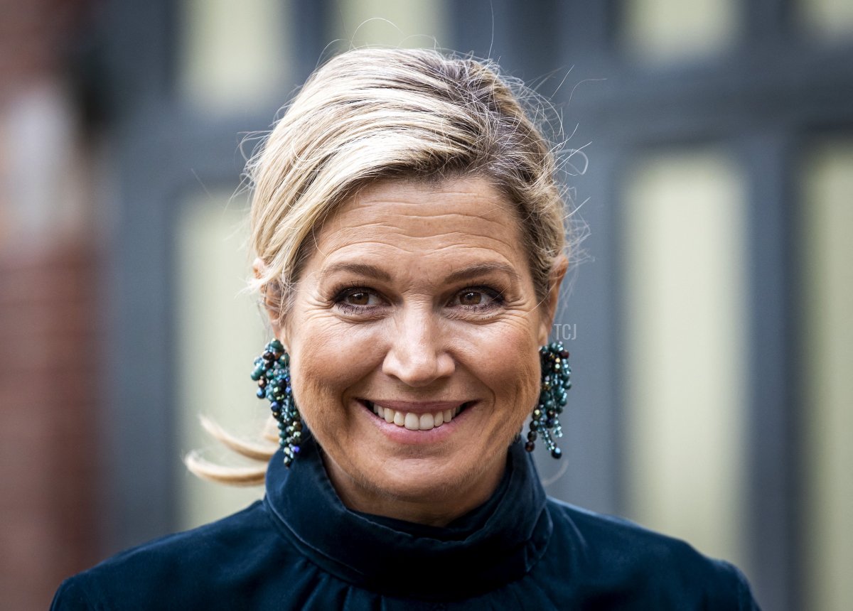 The initiative’s tagline is “Make a Bigger Impact Together.” For the launch, Queen Maxima wore a velvet blouse in a shade of midnight blue and dark trousers.