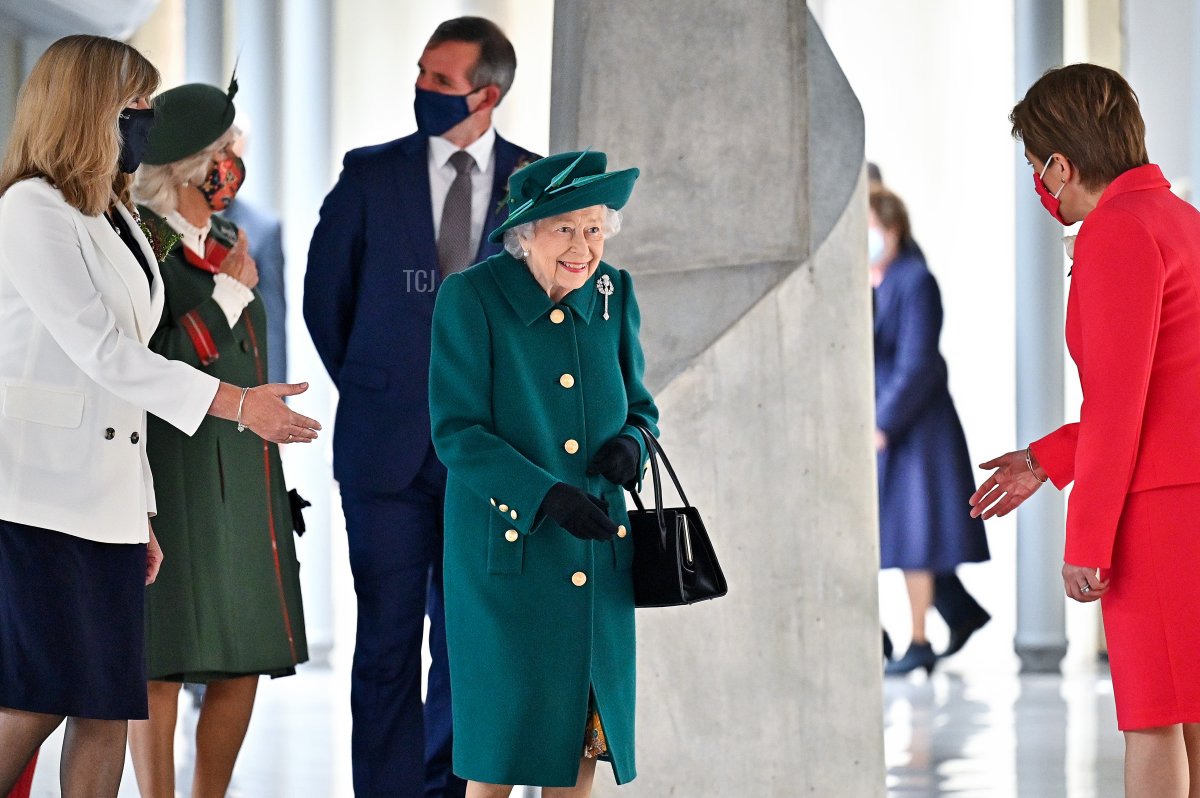 Inside the Scottish Parliament Building in Holyrood, the Queen was greeted by Scottish First Minister Nicola Sturgeon.