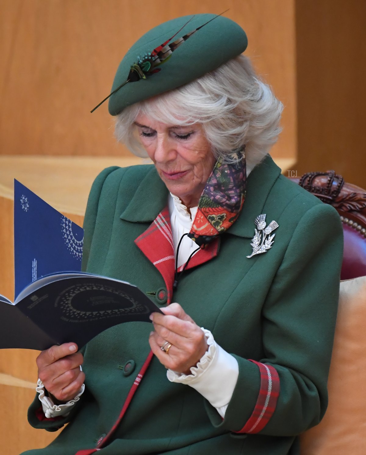The Duchess of Cornwall also wore a brooch that paid tribute to Scotland’s national flower. This is the Queen Mother’s Diamond Thistle Brooch, which Camilla has worn on more than one occasion since joining the royal family in 2005.