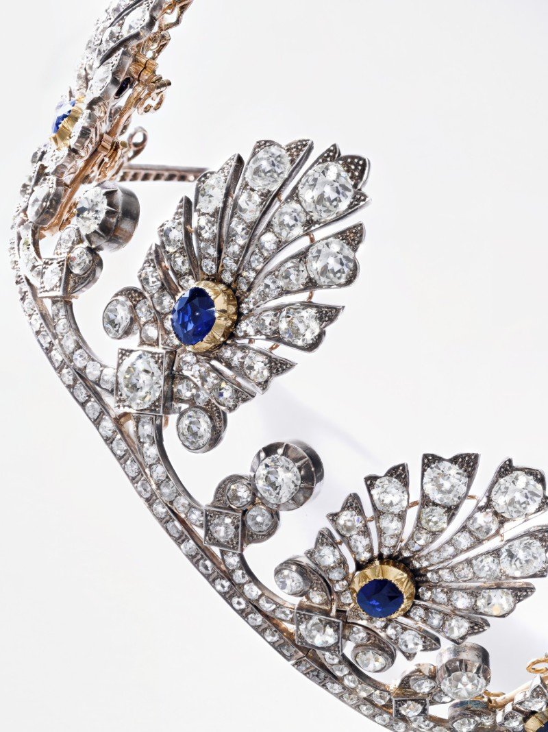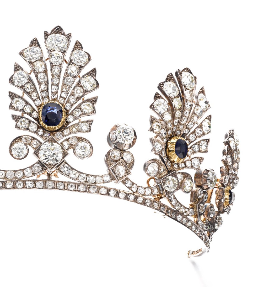 The Romanov sapphires aren’t the only royal jewels being sold at auction by Sotheby’s in Geneva next week! Today, we’re taking a closer look at the most fascinating tiara from the auction catalogue: a diamond and sapphire palmette tiara that once belonged to the Battenbergs.