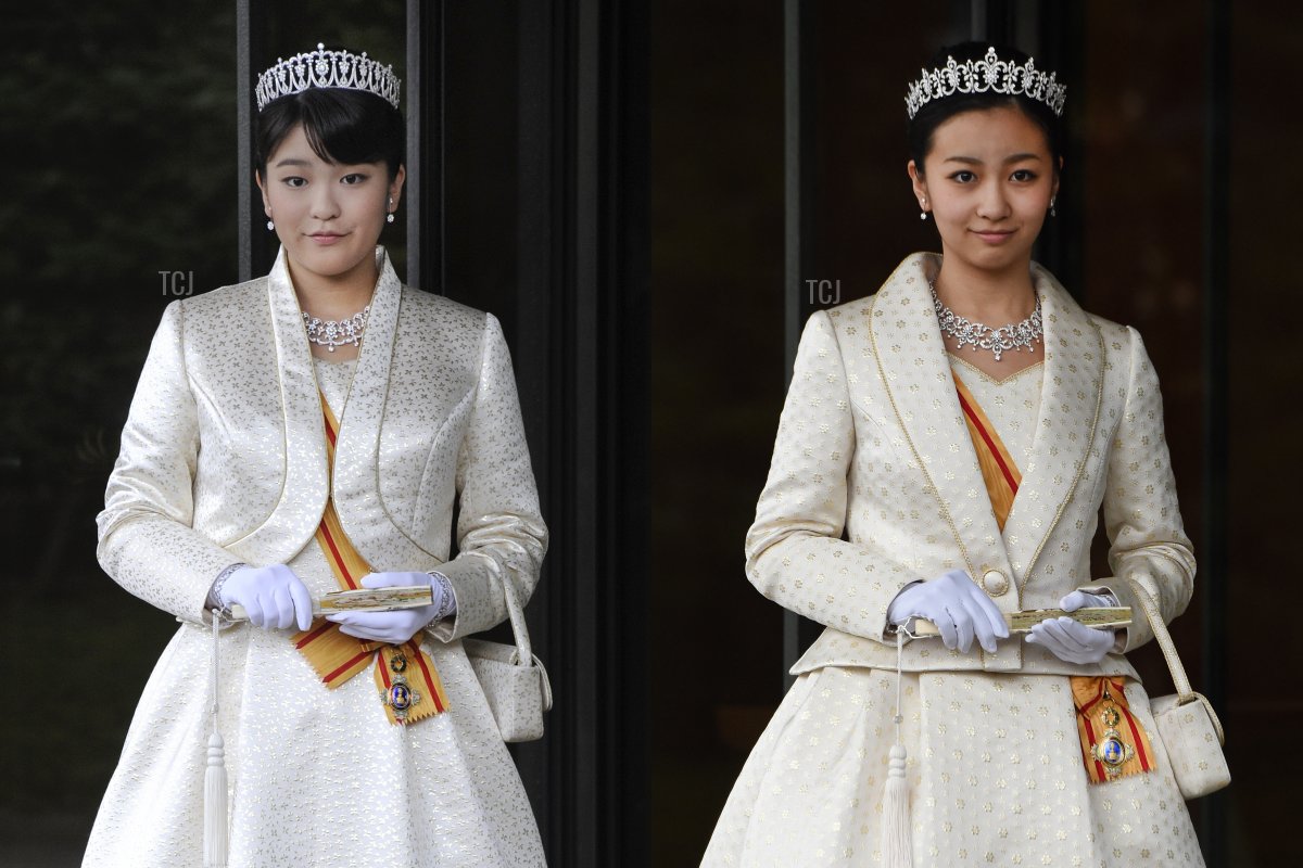 It came as a surprise to some that Princess Aiko would receive a “hand-me-down” tiara instead of a brand-new set of diamond jewels. After all, both of Aiko’s cousins, the most recent imperial princesses to come of age, received new parures. On the left, Princess Mako of Akishino (now Mako Komuro) wears the diamond tiara and coordinating jewels made for her by the Japanese jewelry firm Wako. And on the right, Princess Kako of Akishino wears her diamond tiara and jewels, which were made by Mikimoto. Interestingly, most of the recent suites of jewelry presented to Japanese princesses have been paid for public funds. But the cost of Sayako’s tiara (made by Mikimoto around 1990) was met with funds from her father’s living expense allowance, which means she still owns it, and she’s the one who has decided to lend it and additional jewels to her niece.