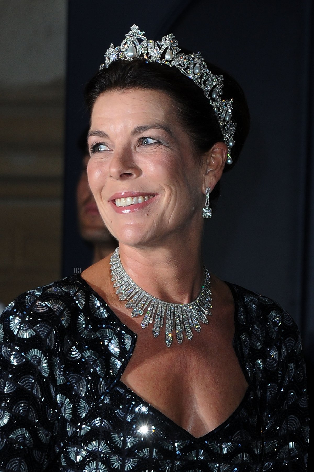 Though the dress sparkled mightily on its own, but Caroline amped up the glamour with several pieces of important jewelry from the princely family’s collection. She wore the Cartier Diamond and Pearl Drop Tiara made for her grandmother, Princess Charlotte, in the 1940s. The fascinating princess ordered the tiara from Cartier herself. While Princess Caroline is the only person in the family who has worn the tiara in recent memory, it belongs to the Palais Princier Collection, not to her personally.