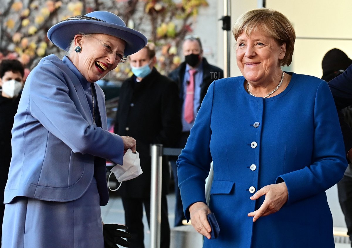 At the Chancellery, Queen Margrethe shared a laugh with longtime Chancellor Angela Merkel, who will retire at the end of her current term.