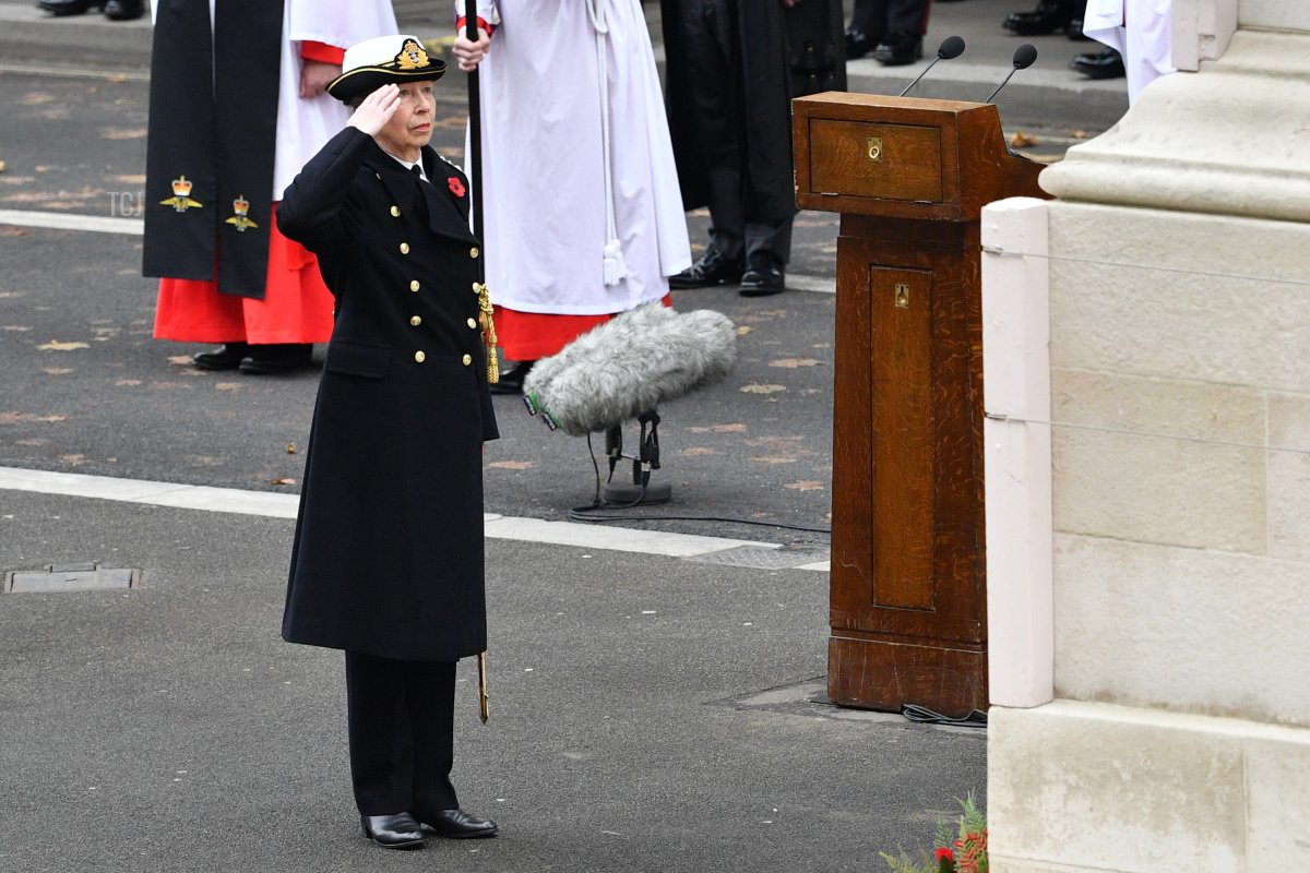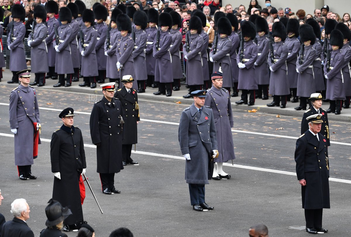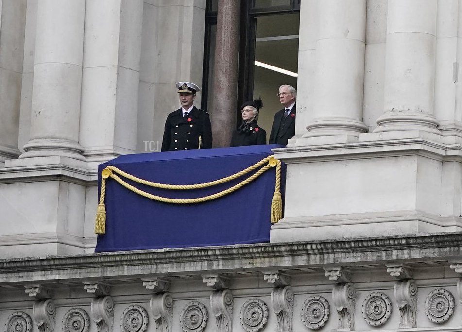 The royal contingent included both those participating in the service at the Cenotaph and those watching from balconies above. The Queen was due to attend, watching from a balcony as she has done for the past few years, but Buckingham Palace announced shortly before the service that she would not be present. The Palace stated: “The Queen, having sprained her back, has decided this morning with great regret that she will not be able to attend today’s Remembrance Sunday service at the Cenotaph. Her Majesty is disappointed that she will miss the service.” News reports stated that the back sprain is unrelated to her recent health challenges, which have included a brief hospital stay and a reduced, light schedule of duties.