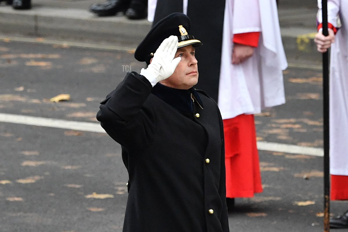 The Earl of Wessex, shown here saluting the Cenotaph, laid a wreath as well.