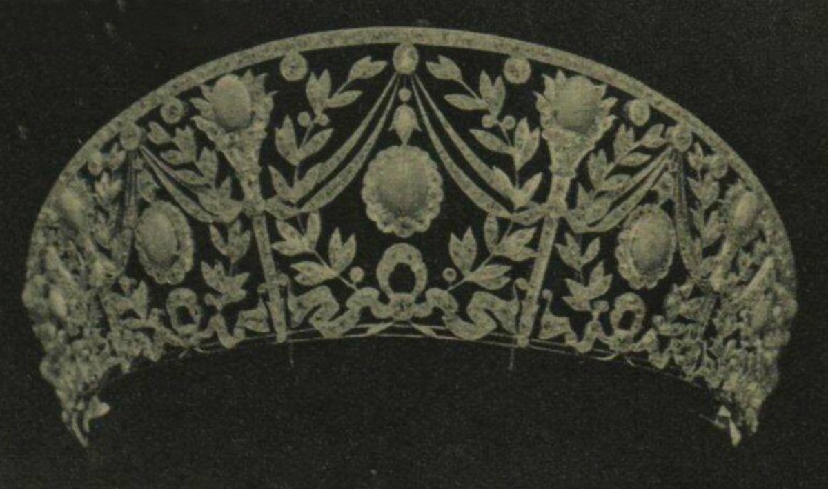 To my knowledge, there are no portraits of Queen Alexandra wearing the turquoise and diamond circlet. We also don’t know for certain exactly when this unique diamond and turquoise tiara, with its Indian-inspired designs, came into Alexandra’s collection. In my research, I came across a newspaper report from the Jersey Evening Post in December 1902 that provides a possible provenance: “Last week we all united in congratulating our beautiful Queen on having attained her fifty-eighth birthday. The King’s birthday present to his Queen was a splendid diamond and turquoise tiara, turquoises being extraordinarily becoming to her fair hair and still lovely complexion.”