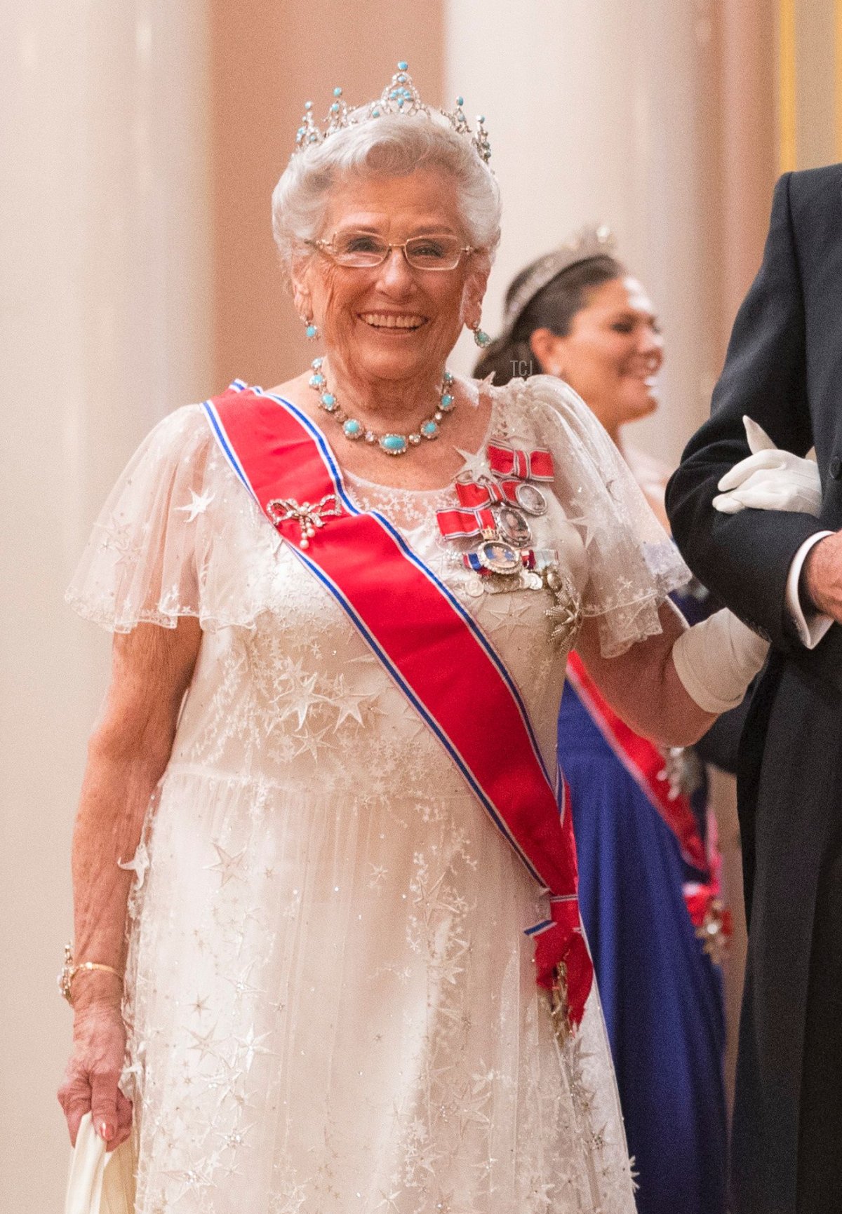 Here’s a more recent picture of Princess Astrid wearing the tiara, taken during the 80th birthday celebrations for King Harald V and Queen Sonja of Norway in 2017.