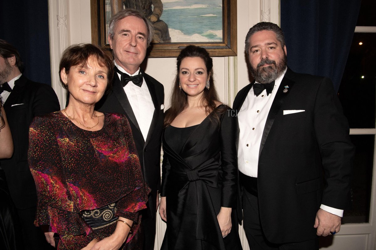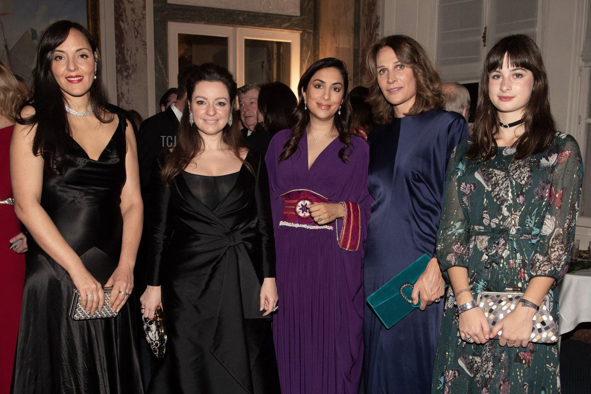 Here, from left to right, we’ve got several more royal descendants in attendance at the dinner: Princess Yasmine Murat, who married Prince Joachim Murat (a descendant of Joachim Murat and Caroline Bonaparte) earlier this year; Princess Victoria Romanovna; Princess Noal of Egypt (and Afghanistan); and Antonella Rendina (wife of Don Álvaro Jaime de Orléans-Borbón, who is a cousin of the Spanish royal family) and her daughter, Donna Eulalia de Orléans-Borbón y Rendina.