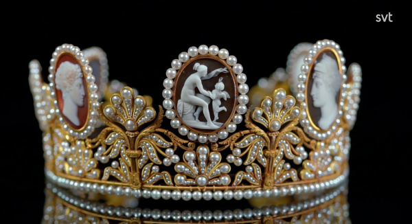 After a wait of more than a decade, the Swedish Cameo Tiara was worn again in public this year. The magnificent, unusual tiara, which is made of gold and set with pearls and intricate cameos, is believed to have been a gift from Napoleon to Josephine in 1809. The cameos were carved by some of Napoleon’s favorite artisans, and they depict scenes from Greco-Roman mythology.