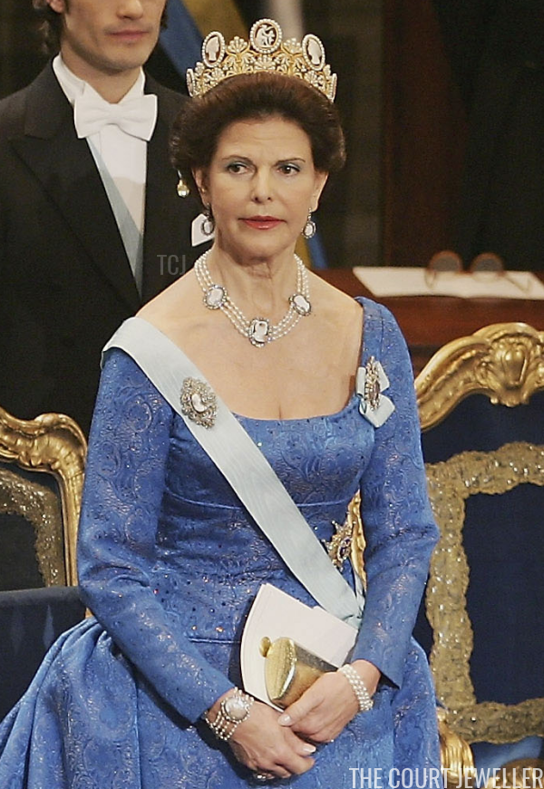 She’s been the primary wearer of the fragile antique tiara ever since, donning it for occasions like state banquets and the annual Nobel Prize celebrations each December. Above, she wears it at the Nobels in 2005.