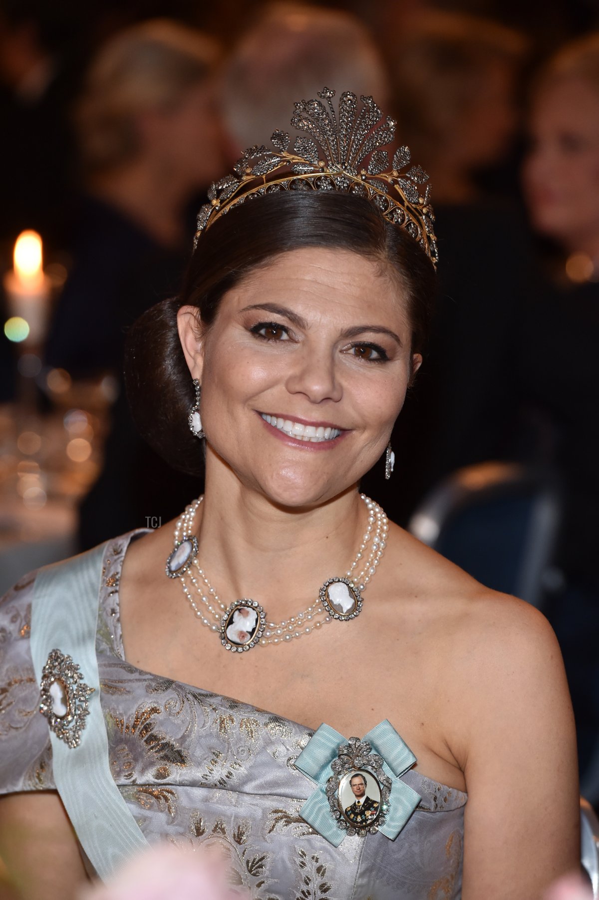 In December 2016, Crown Princess Victoria combined pieces from the Cameo Parure with another jewel from the same era, the Napoleonic Cut-Steel Tiara, for the Nobel Prize celebrations.