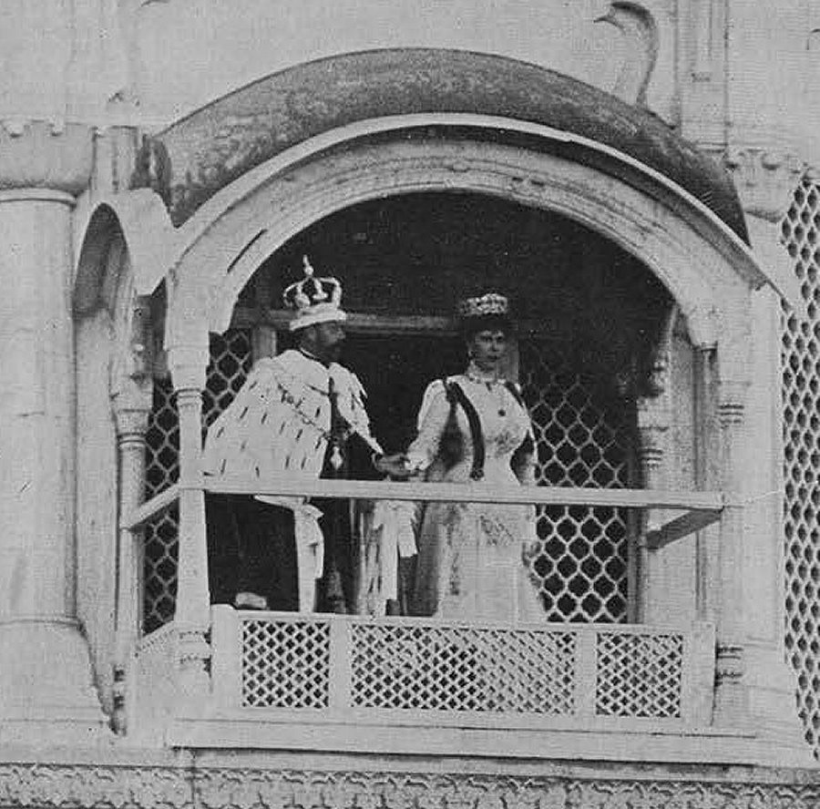 The festivities in 1911 lasted for more than a week. On December 12, 1911, King George and Queen Mary appeared before a crowd of thousands, including Indian princes and nobles, at Coronation Park in Delhi. The following day, they also made a balcony appearance (pictured above) at the Red Fort, allowing even more of the people to see them in their splendid durbar attire.