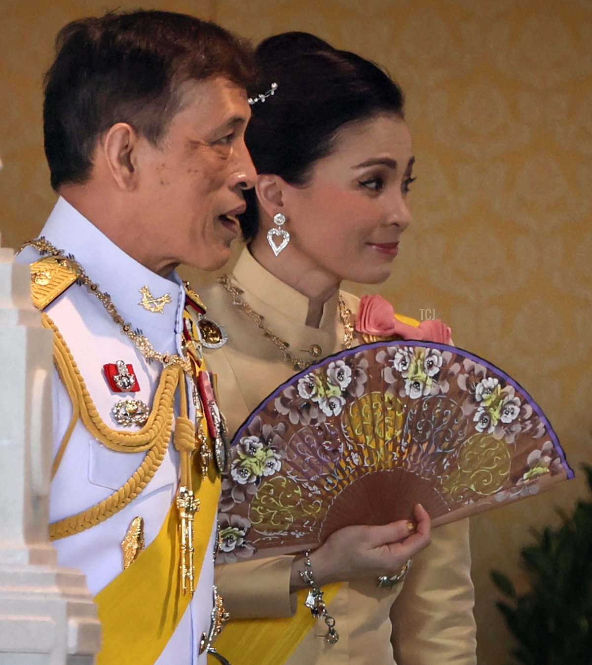 In Thailand, the royal family gathered on Sunday to attend a groundbreaking ceremony for a monument of the King’s late father, King Bhumibol Adulyadej at a memorial park in Bangkok. Queen Suthida wore several pieces of jewelry for the event, including a pair of earrings with diamond-set heart pendants.
