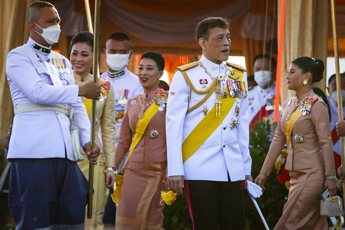 For the memorial groundbreaking, diamond and gold jewels were also worn by Princess Bajrakitiyabha Mahidol (standing between Queen Suthida and the King) and Princess Sirivannavari Nariratana (on the right).