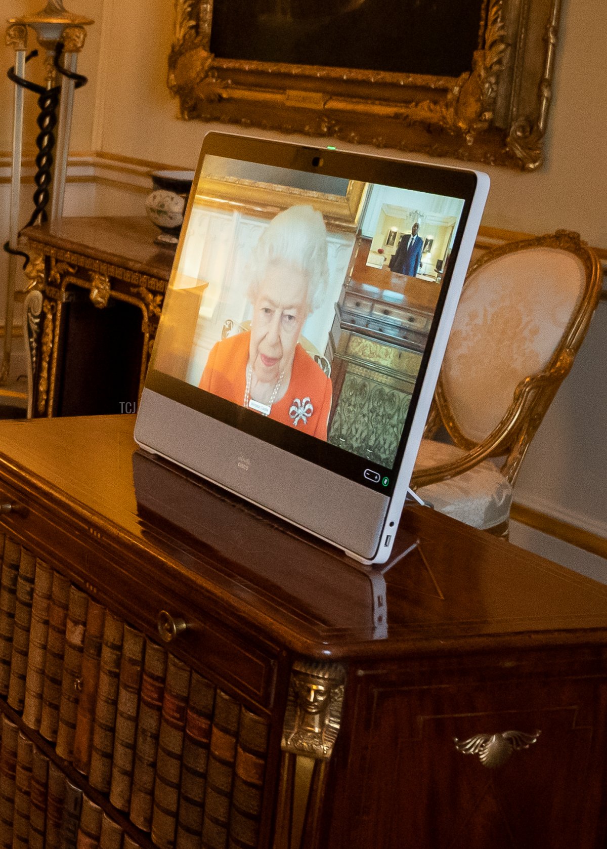 On Tuesday, Queen Elizabeth II of the United Kingdom wore one of Queen Victoria’s Bow Brooches to hold virtual audiences via videolink from Windsor Castle to Buckingham Palace.