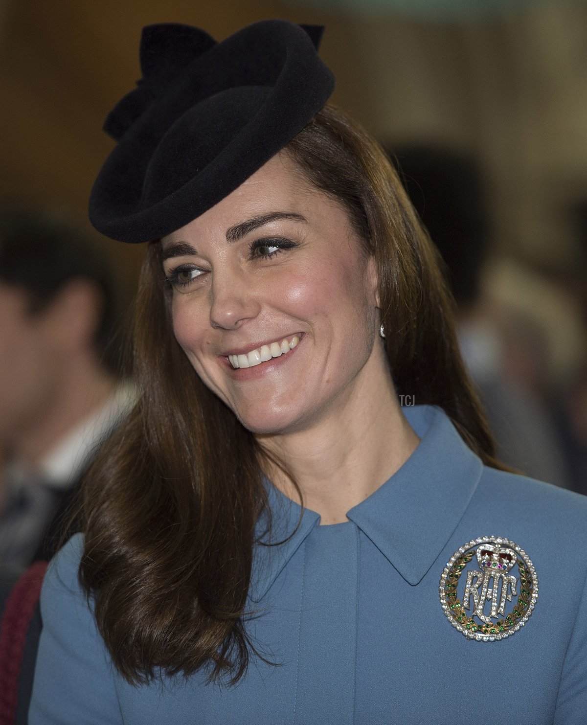 Kate wears this incredible gem-set military brooch in her official capacity as Honorary Air Commandant of the Air Cadets. The brooch is named in honor of the late Air Commodore G.B. Dacre and his wife, Elizabeth, who presented it to the Air Cadets in 1982. Until 2015, the brooch was presented to the best female Air Cadet of the year; like her male counterpart, the best female cadet now receives the Dacre Sword. Kate first wore the brooch at a service to mark the organization’s 75th anniversary in February 2016.