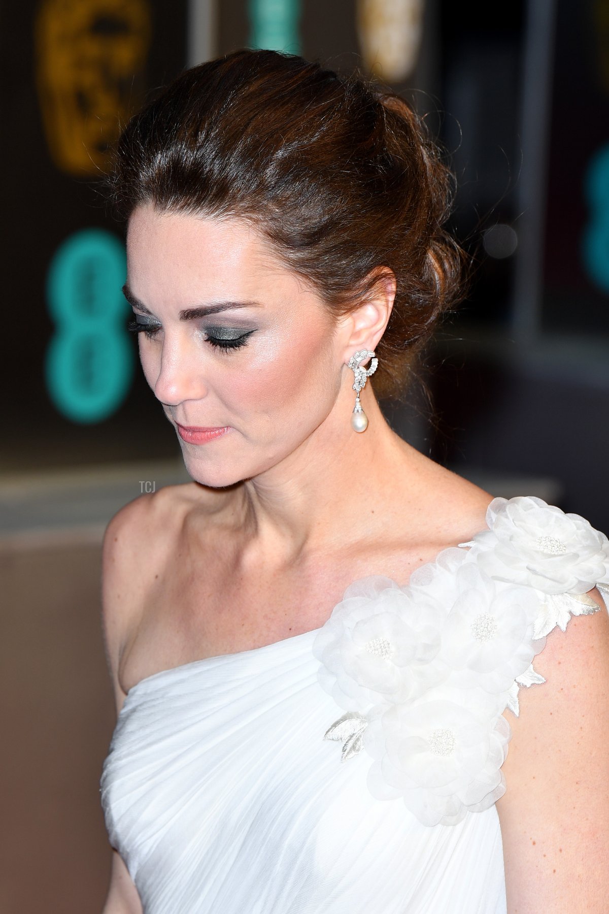 This modern pair of earrings, which has an equestrian theme courtesy its horseshoe and laurel wreath designs, originally belonged to the late Diana, Princess of Wales. Kate first wore them in public for the BAFTAs in February 2019, though she chose to use a different pearl drop with them than Diana had.