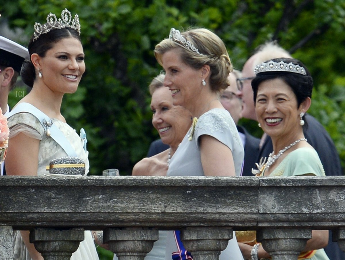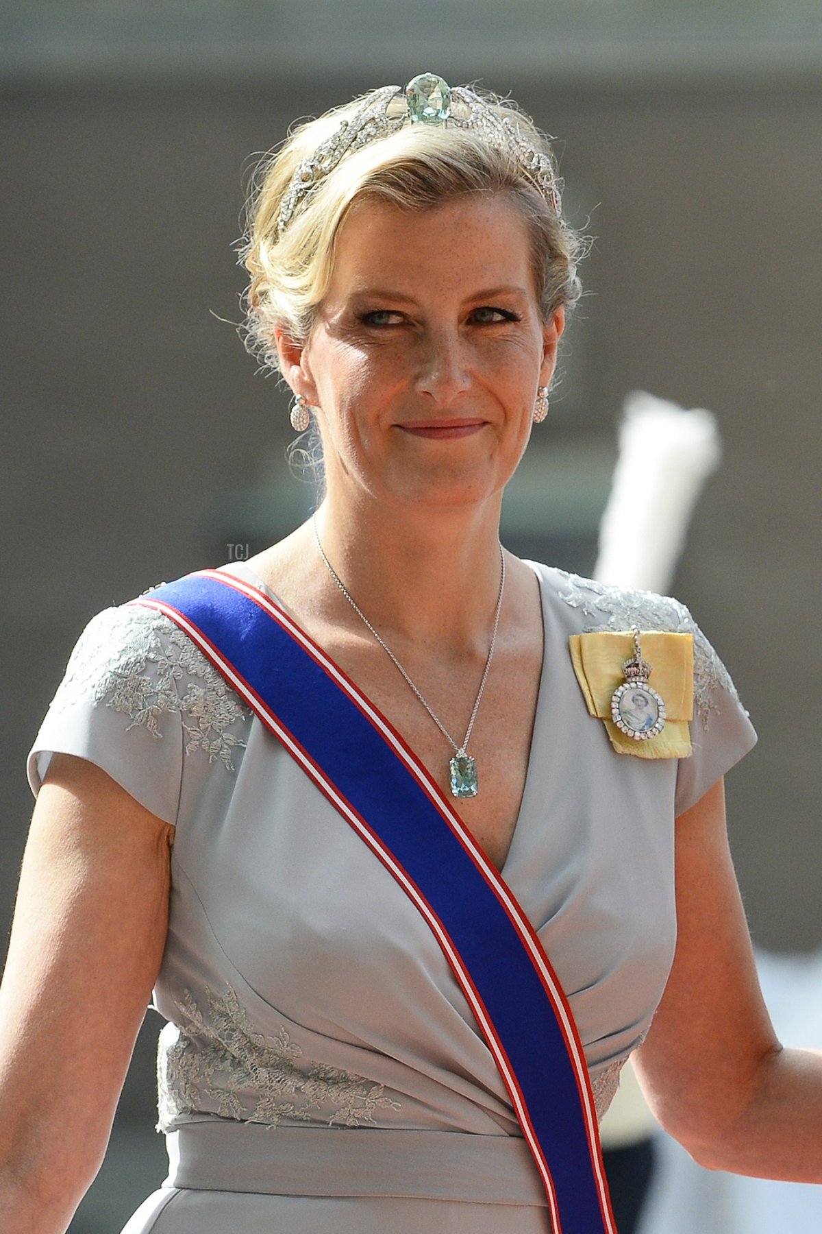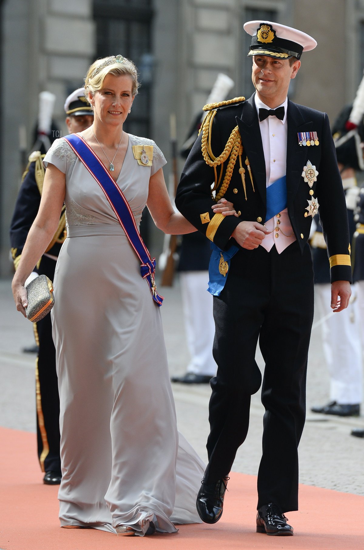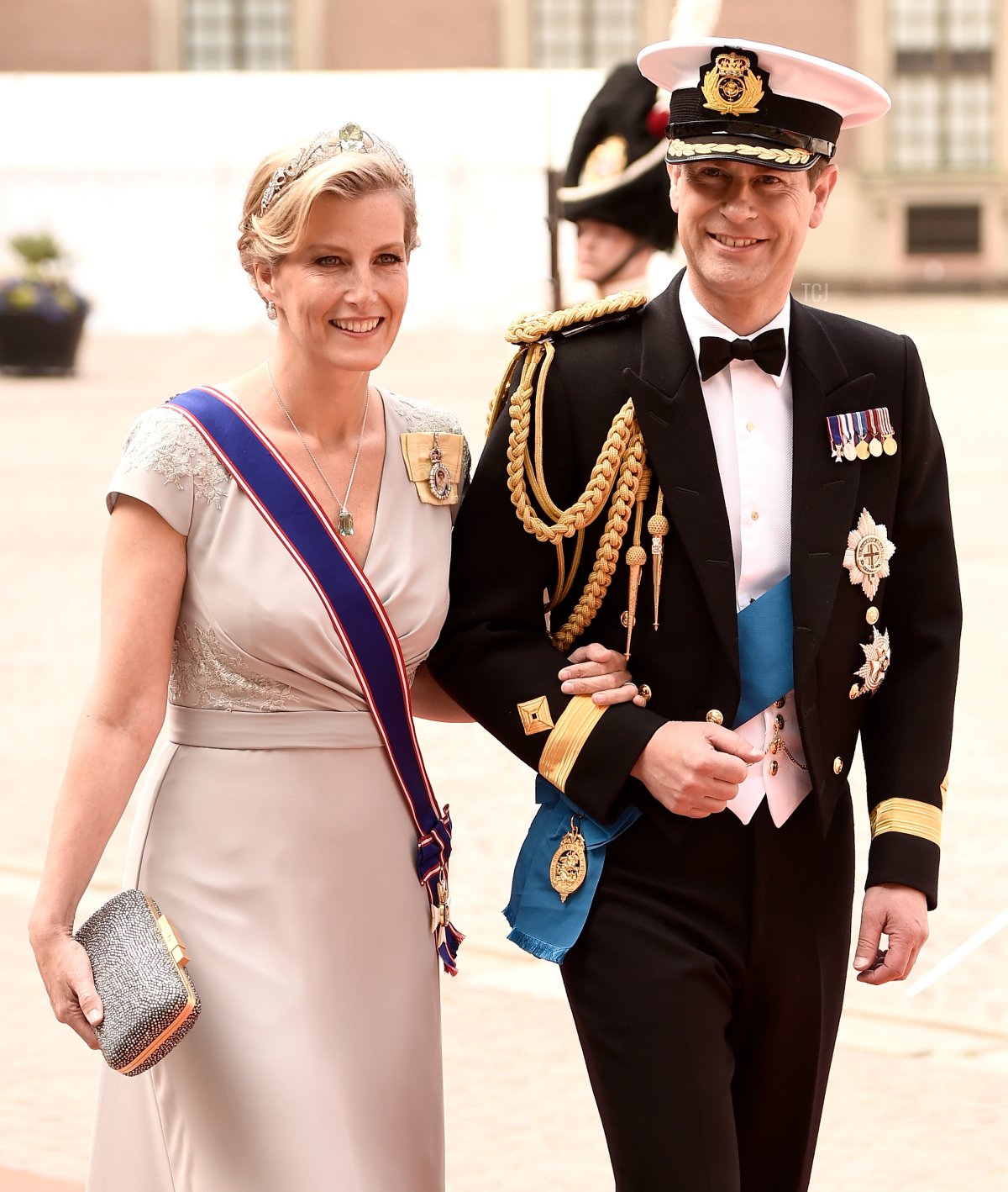 The Earl and Countess of Wessex were the Queen’s go-to representatives for foreign weddings over the past two decades. In June 2015, they traveled to Stockholm to attend the wedding of Prince Carl Philip and Princess Sofia of Sweden. For the occasion, Sophie wore an elegant dove gray gown paired with metallic accessories.