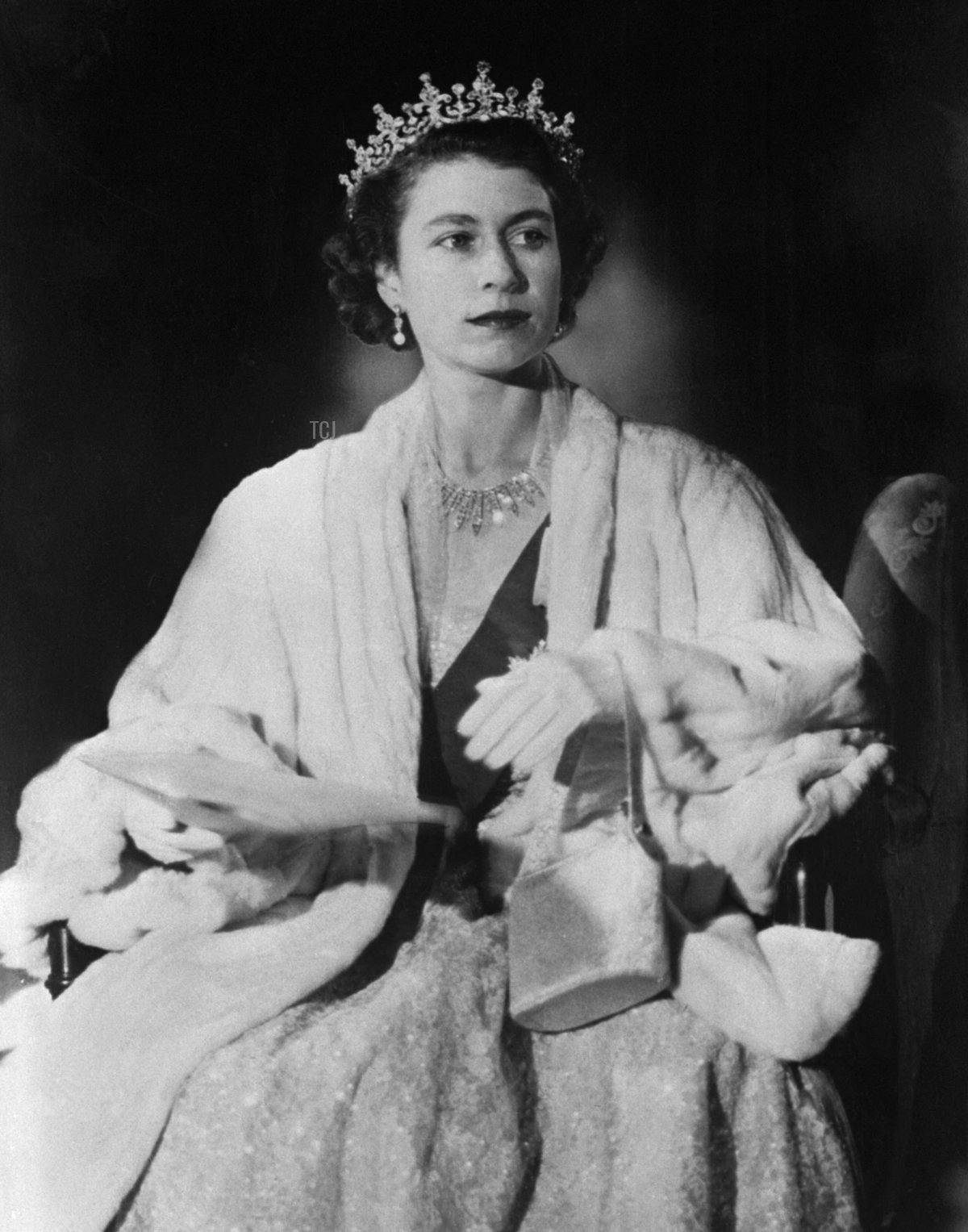 Princess Elizabeth wore a tiara in public for the first time on her wedding day at Westminster Abbey. The ceremony took place on November 20, 1947. She borrowed Queen Mary’s Fringe Tiara from her mother, pairing it with the Gloucester Pearl and Diamond Earrings and the Queen Anne and Queen Caroline Pearl Necklaces.