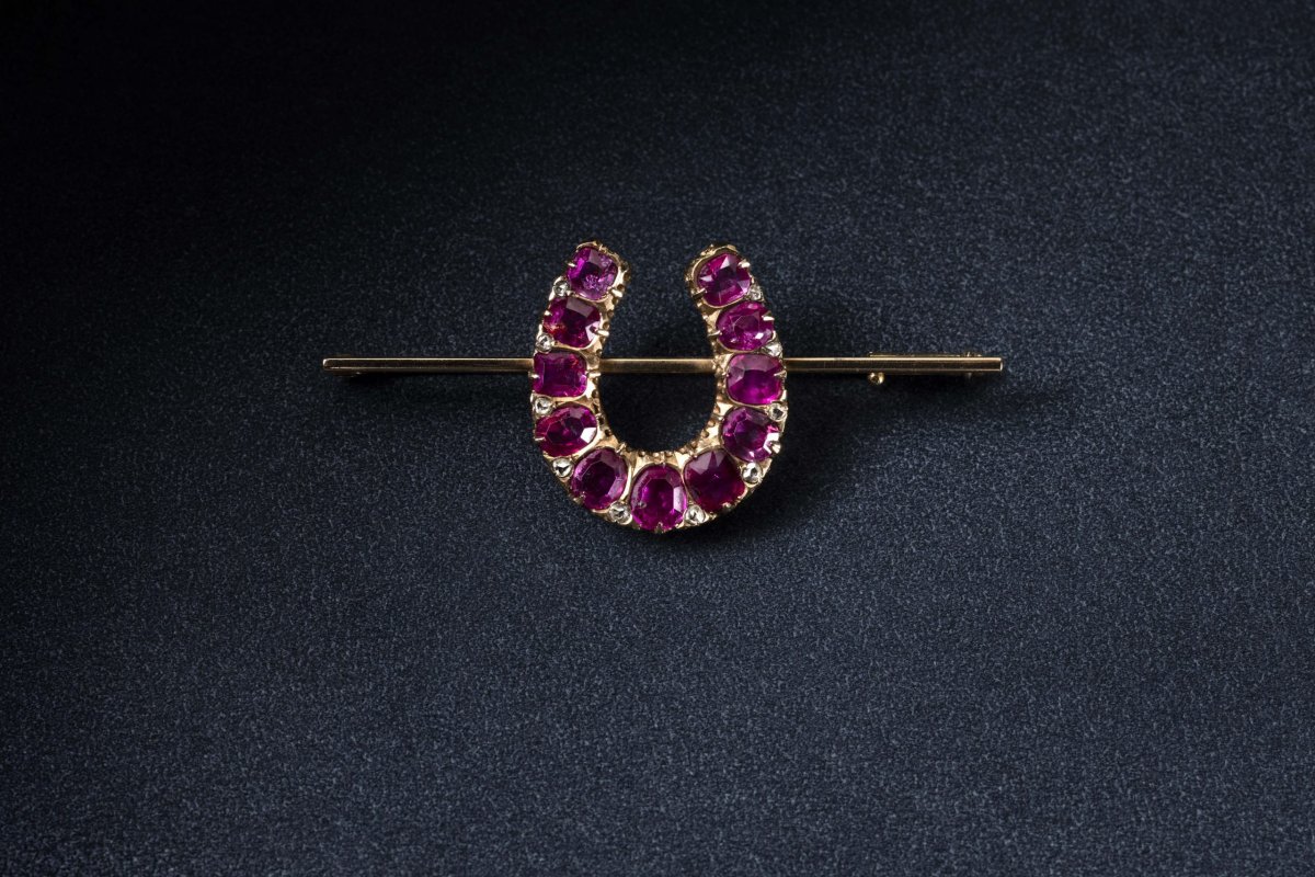 The new 1953 law ensured that King Frederik and Queen Ingrid’s eldest daughter, Princess Margrethe, would inherit the throne. Before that, the heir had been the king’s younger brother, Hereditary Prince Knud. To mark the moment when his daughter became his heir, King Frederik presented Princess Margrethe with a special brooch. The jewel, studded in rubies and diamonds, reflects Denmark’s national colors. Its shape, a small horseshoe, is a token of luck and fortune.