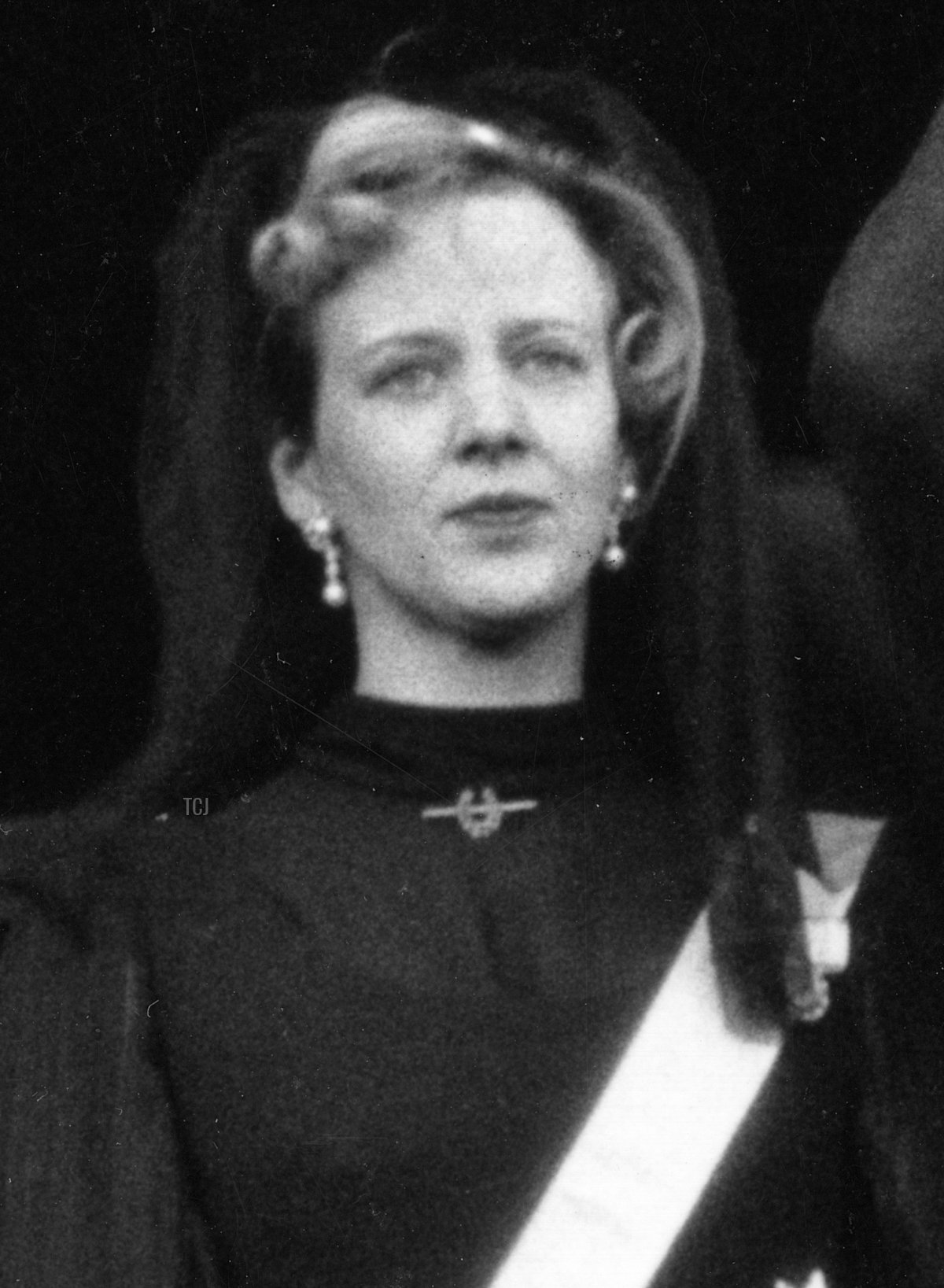 Not quite twenty years later, on January 14, 1972, the inevitable happened: King Frederik passed away, and Princess Margrethe became the Queen of Denmark. The new Queen Margrethe II was proclaimed monarch the next day by the prime minister. Denmark doesn’t crown their monarchs, so this proclamation ceremony was the important moment where the public could see their new queen for the first time.