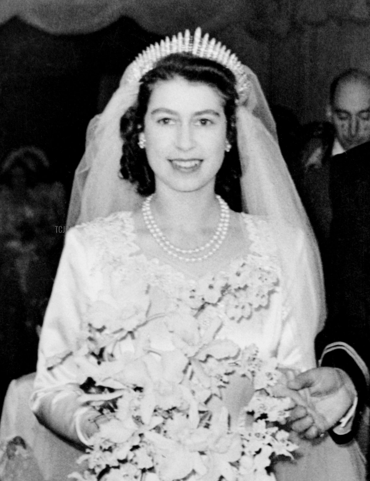 Princess Elizabeth’s father, King George VI, dipped into the royal vaults to offer her these paired pearl necklaces as a wedding gift, likely knowing that she’d inherit them as heirlooms of the crown eventually anyway. If family tradition is correct, they’re among the oldest pieces of British royal jewelry still worn by the Queen. The smaller strand, made of 46 pearls, is said to have been worn by Queen Anne, the last Stuart monarch. The longer strand, which includes 50 pearls, is attributed to Caroline of Ansbach, the queen consort of George II. Queen Victoria’s jewel inventory of 1896, made by Garrard, notes the pearl necklaces and is the first recorded statement of their Stuart/Hanoverian provenance. Here, Princess Elizabeth wears both necklaces on her wedding day at Westminster Abbey in November 1947, paired with Queen Mary’s Fringe Tiara and the Gloucester Diamond and Pearl Earrings.