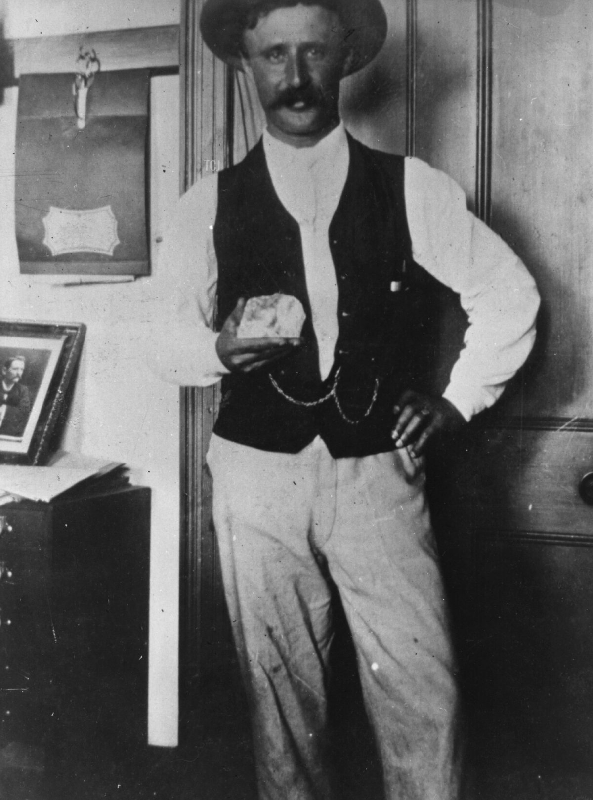 The diamond was found at the Premier No. 2 mine in Cullinan, South Africa. The superintendent of the mine, Frederick Wells, spotted the enormous stone by chance while on his rounds. Caroline de Guitaut of the Royal Collection described the moment: “So incredible was its discovery that the moment it was found at the Premier Mine it was thrown out of the window of the mine manager’s office because it was thought to be a worthless crystal.” Wells is pictured above holding the immense stone. The rough diamond measured at more than 3000 carats and weighed more than a pound. It was the biggest diamond that had ever been discovered.