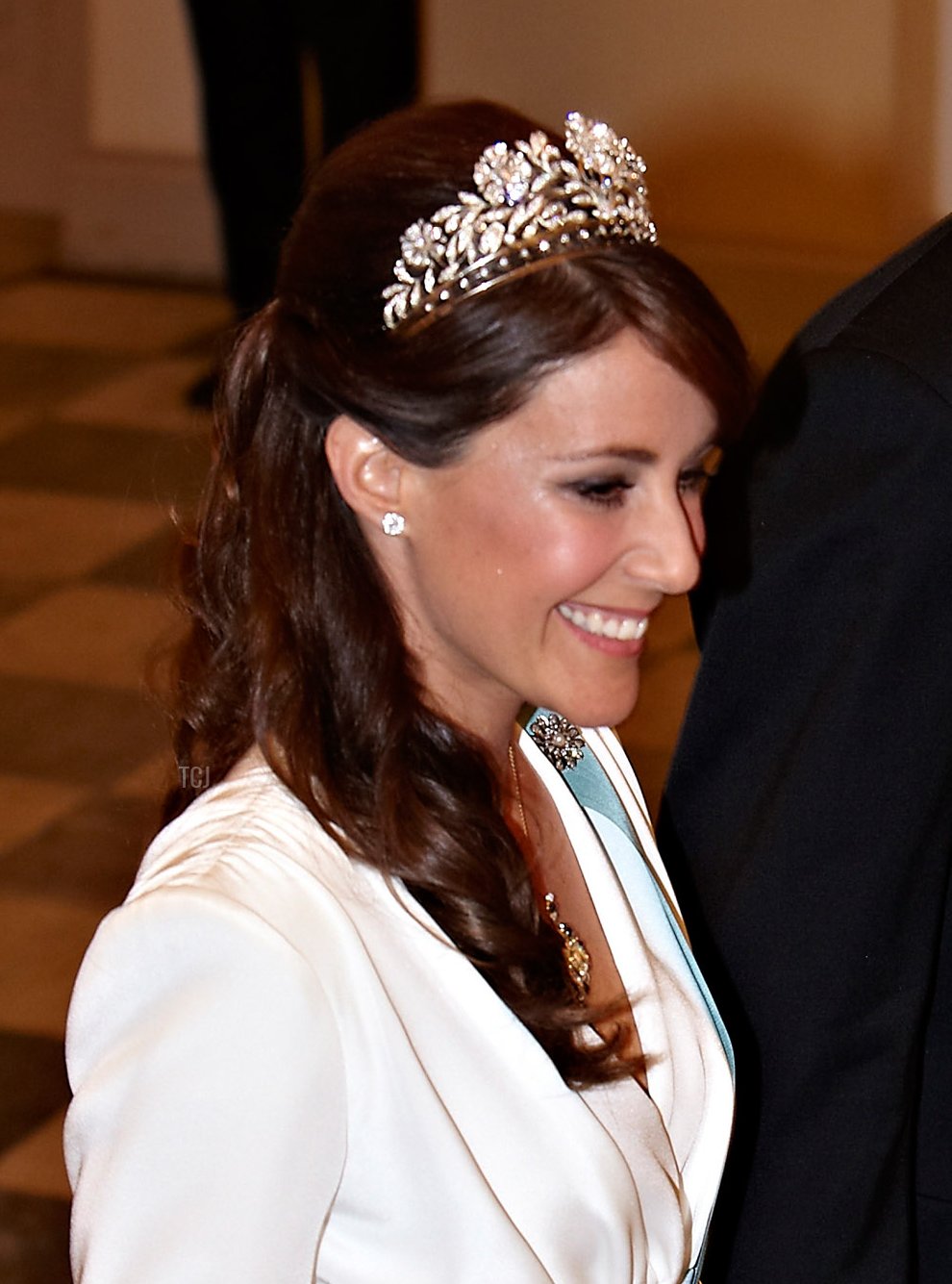 Princess Marie wore the diamond floral tiara for her wedding in May 2008, and it’s been her primary tiara for nearly all gala occasions ever since. For this event, she wore the tiara with diamond stud earrings.