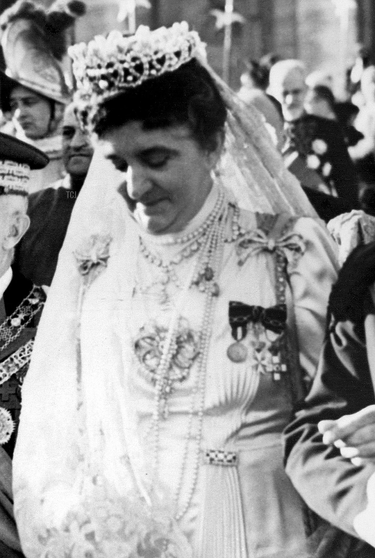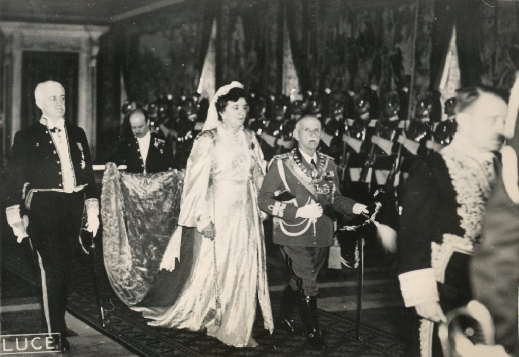 When King Umberto I of Italy died in 1900, he was succeeded by his only child, King Vittorio Emanuele III. The new king’s wife was Princess Elena of Montenegro, whom he had married less than four years earlier. She would wear the queen consort’s jewels for the next 46 years. They’re pictured together above in 1937 in the chapel of the Quirinal Palace in Rome.