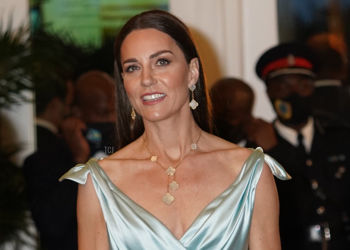 Kate saved the glamorous jewels for Friday’s evening event: a reception hosted by Governor General Cornelius A. Smith at the Baha Mar Resort in Nassau.