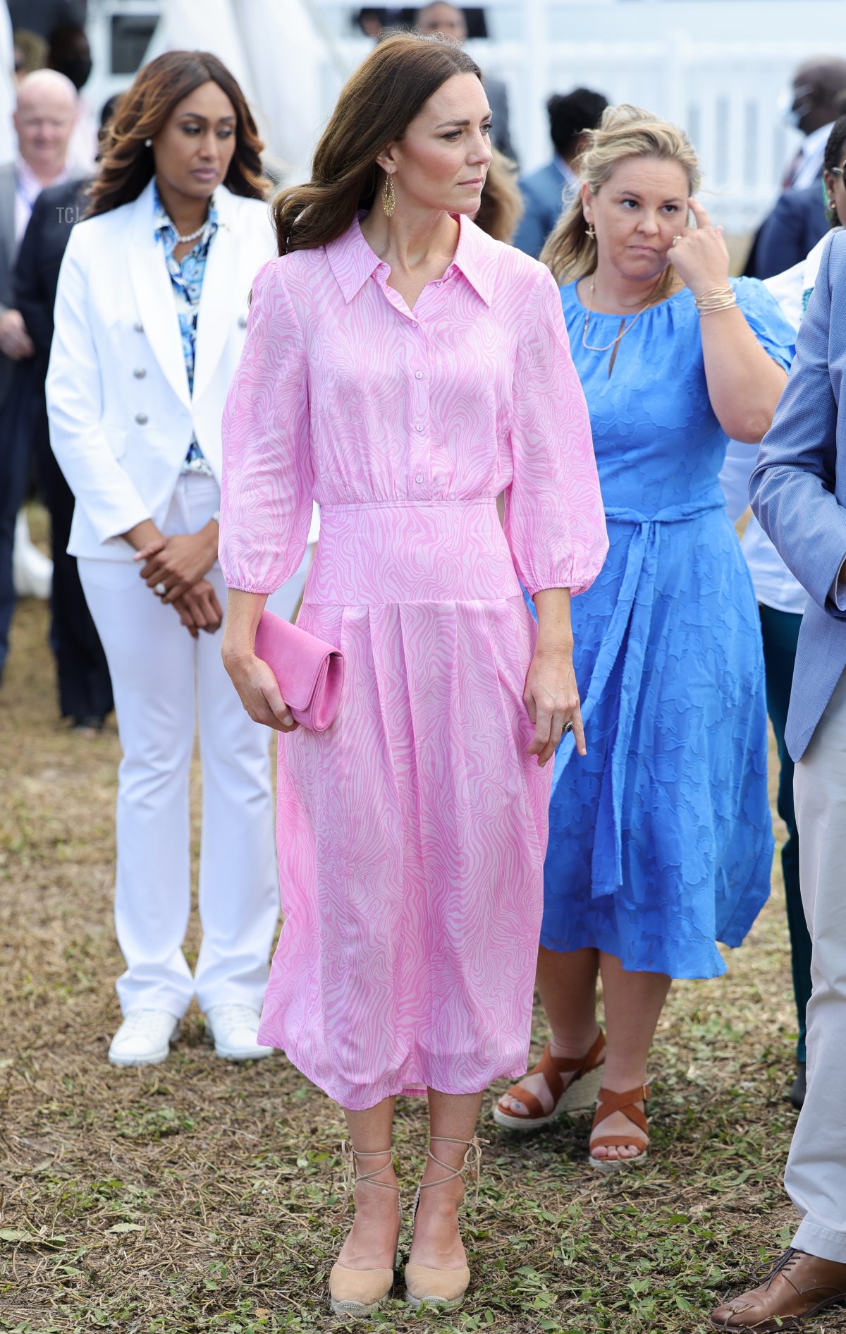 For the visit to Great Abaco, Kate wore a pink dress from Rixo.