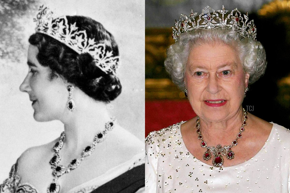 King George VI was one of Cartier’s best customers, often purchasing jewels from the firm for his wife and daughters. This petite diamond scroll tiara was a wedding anniversary present from George to Elizabeth in 1936, the year before they ascended to the throne. They later gave it to the present Queen as an 18th-birthday present. It’s since been worn by Princess Margaret and Princess Anne, and in 2011, the Duchess of Cambridge memorably chose it as her bridal tiara. (The Queen also owns another of the Queen Mother’s Cartier tiaras, the Bracelet Bandeau, though she has only worn the bracelets individually.)