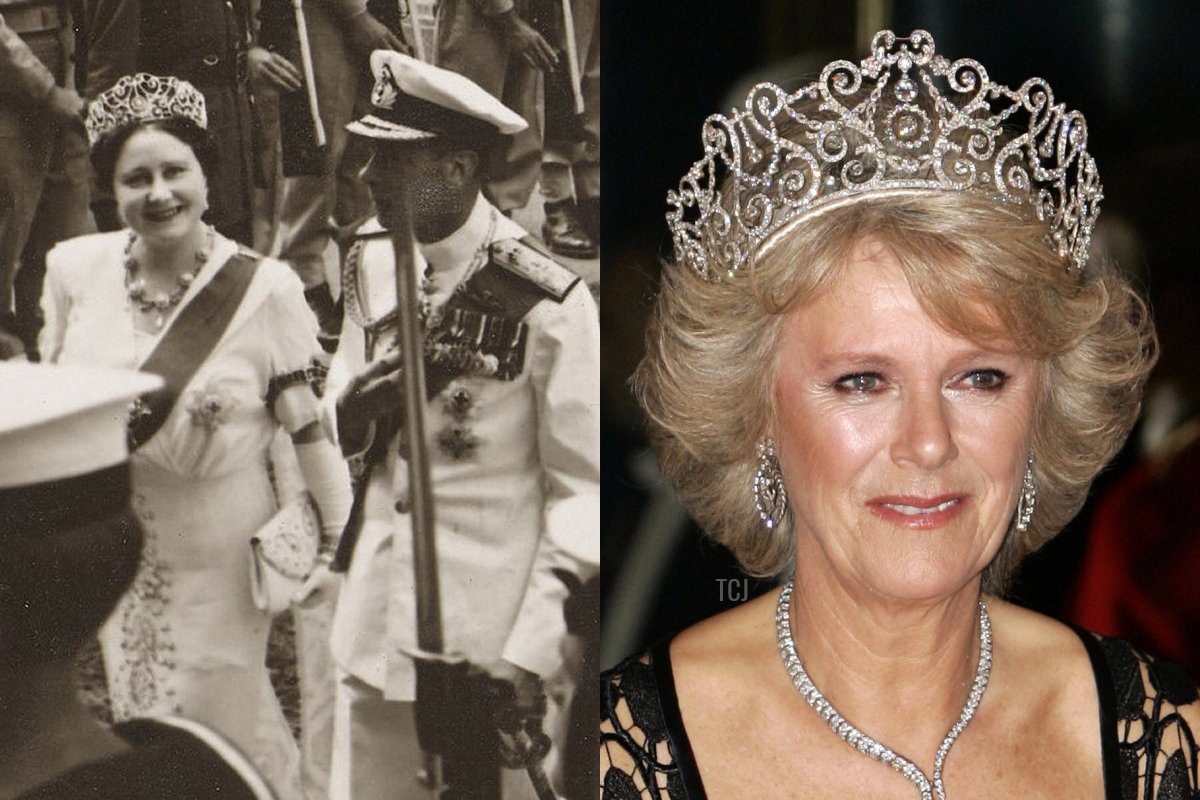 Queen Mary’s husband, King George V, called this sparkler her “best tiara.” It was made in 1911 for the Delhi Durbar, the celebration of the couple’s coronation in India. Mary recycled diamonds from another dismantled tiara to make the piece, which was originally also set with some of the famous Cambridge emeralds. In 1912, Garrard altered the piece so that it could be worn with the Cullinan III and IV diamonds. Mary gave it as a long-term loan to Queen Elizabeth the Queen Mother, who wore it only once in public (in South Africa in 1947) and kept it until her death. Today, it’s now on loan to the Duchess of Cornwall, who has also so far only worn it in public once.