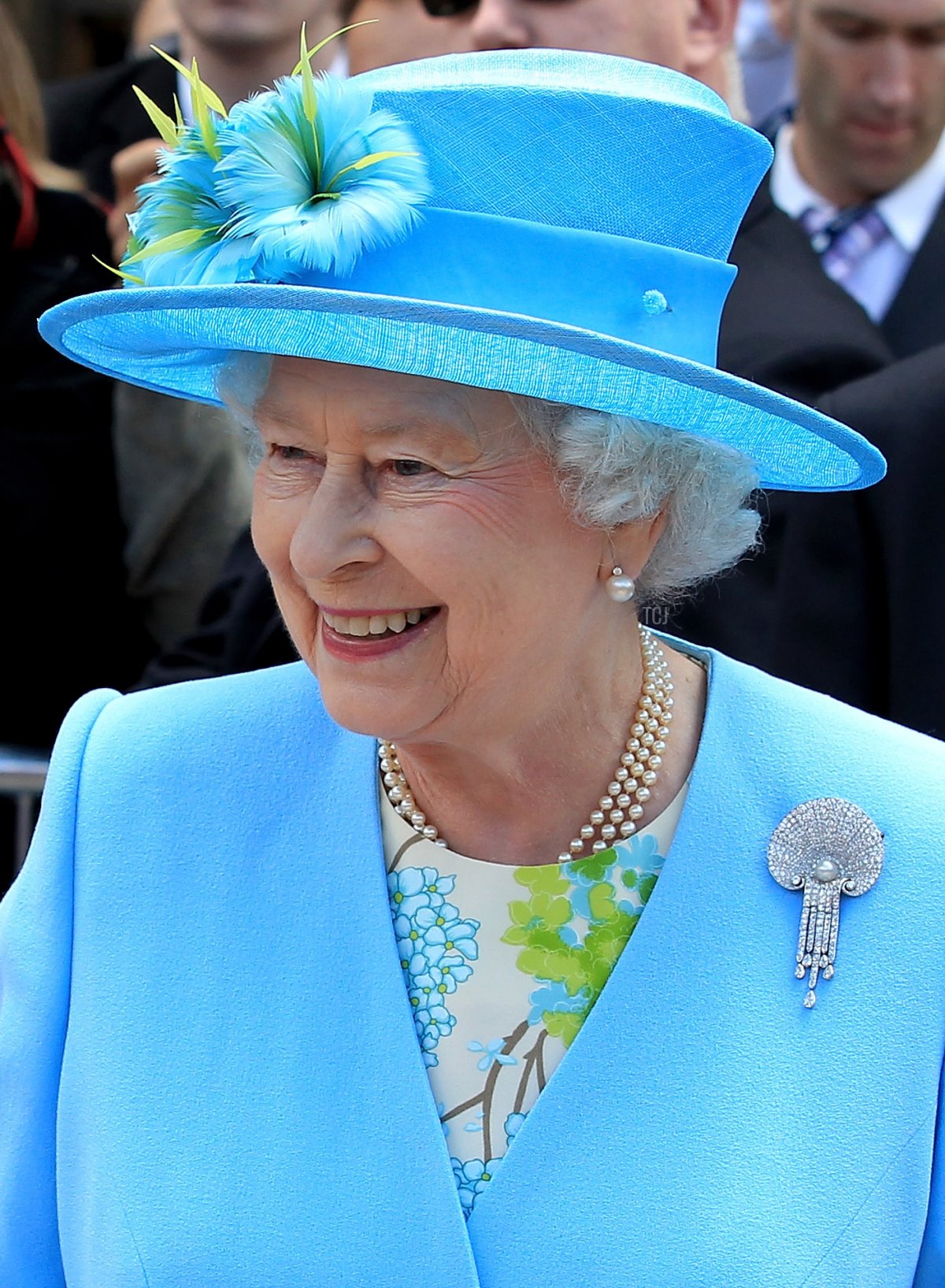 This masterful brooch, which features a shell motif in diamonds studded with a single round pearl, was made in 1919 in London by the Goldsmiths and Silversmiths Co., Ltd. It was designed in part by Sir Courtauld Thomson, who was the son of a famous Scottish inventor. His sister, the writer Winifred Hope Thomson, ended up with the piece, and she left it to the Queen Mother in 1944. She treasured the piece, even wearing it on her 100th birthday. Now, the present Queen loves and wears the brooch equally frequently.