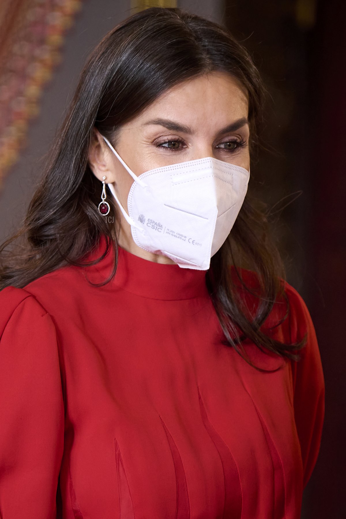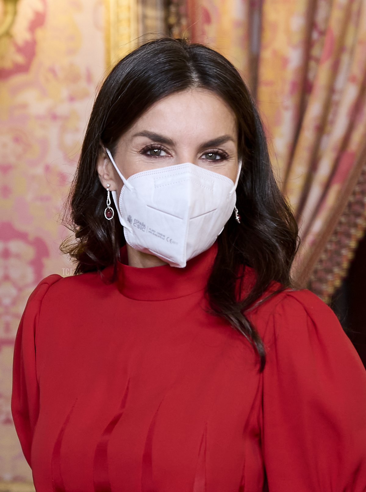 On Monday, the King and Queen of Spain hosted diplomatic guests from North America at the Royal Palace in Madrid. For the occasion, Queen Letizia wore one of her favorite pairs of earrings.
