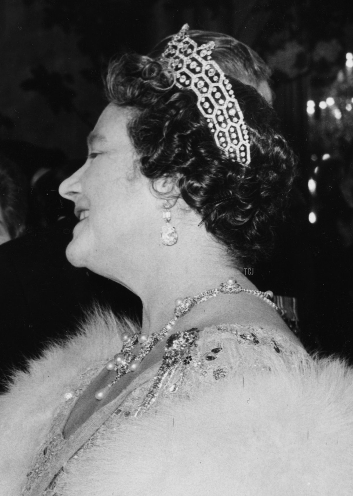 She’d had the earrings in her jewelry box for more than two decades by that point. The earrings arrived in her collection in 1942, when they were bequeathed by Dame Margaret Greville to Queen Elizabeth (better known to us as the Queen Mother). They were some of the more recent additions to the Greville cache, having been made by Cartier in 1938.