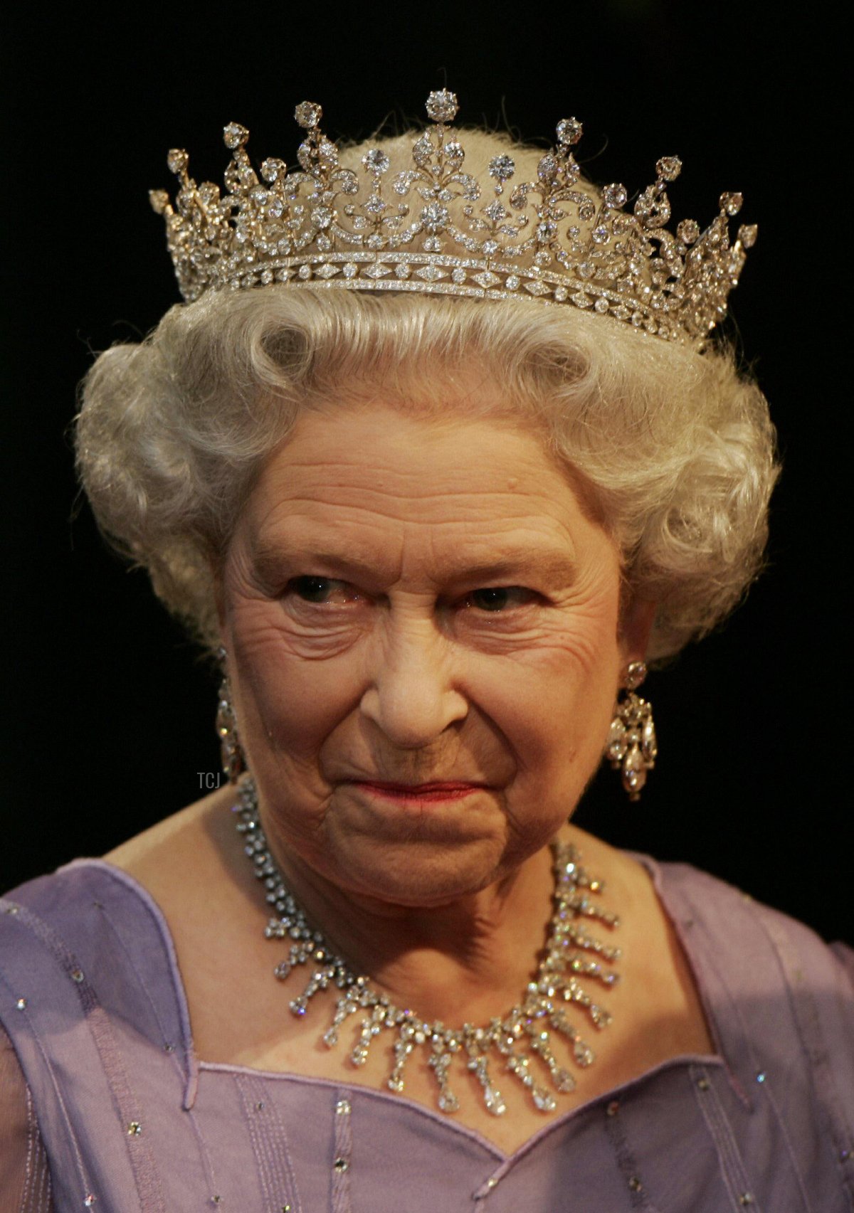 Eventually, May decided to have the County of Surrey Tiara dismantled as well. In 1913, the piece was broken apart, and the diamonds were used to construct and improve other jewels. Thirteen of the largest diamonds from the Surrey Tiara, for example, were used to replace the upright pearls which had once sat atop the Girls of Great Britain and Ireland Tiara (worn here by the Queen in 2004).
