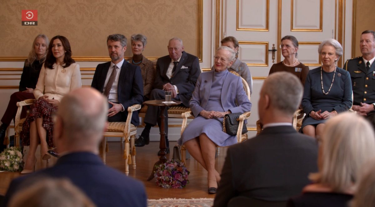 Many members of the royal family attend the opening, which was delayed slightly because of the pandemic. We see Queen Margrethe, Crown Prince Frederik, Crown Princess Mary, Princess Benedikte, Count Ingolf, and Countess Sussie attending the opening and touring the space. We get a fabulous view of the exhibition itself—well worth watching! And we also hear Margrethe’s remarks as she opens the show. She describes the incredible range of jewels on show: “These are great things. Strange things. Great stuff. And pretty simple stuff, which you just wear because you have a relationship with it. It’s nothing about the carats. It’s something about the heart, I think.”