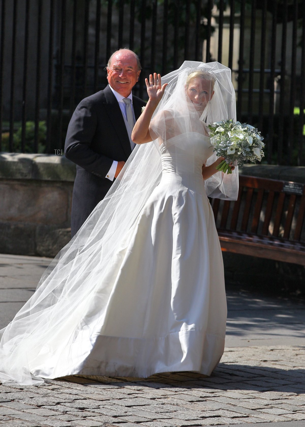 Zara Phillips, the daughter of the Princess Royal, arrived at Canongate Kirk in Edinburgh for her wedding to rugby player Mike Tindall on July 30, 2011. She was accompanied by her father, Captain Mark Phillips, as she arrived for the ceremony.