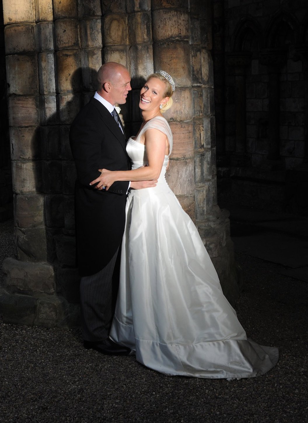 For the couple’s official wedding portraits, taken after the ceremony at the Palace of Holyroodhouse, Zara removed her veil and let the royal diamonds take center stage.