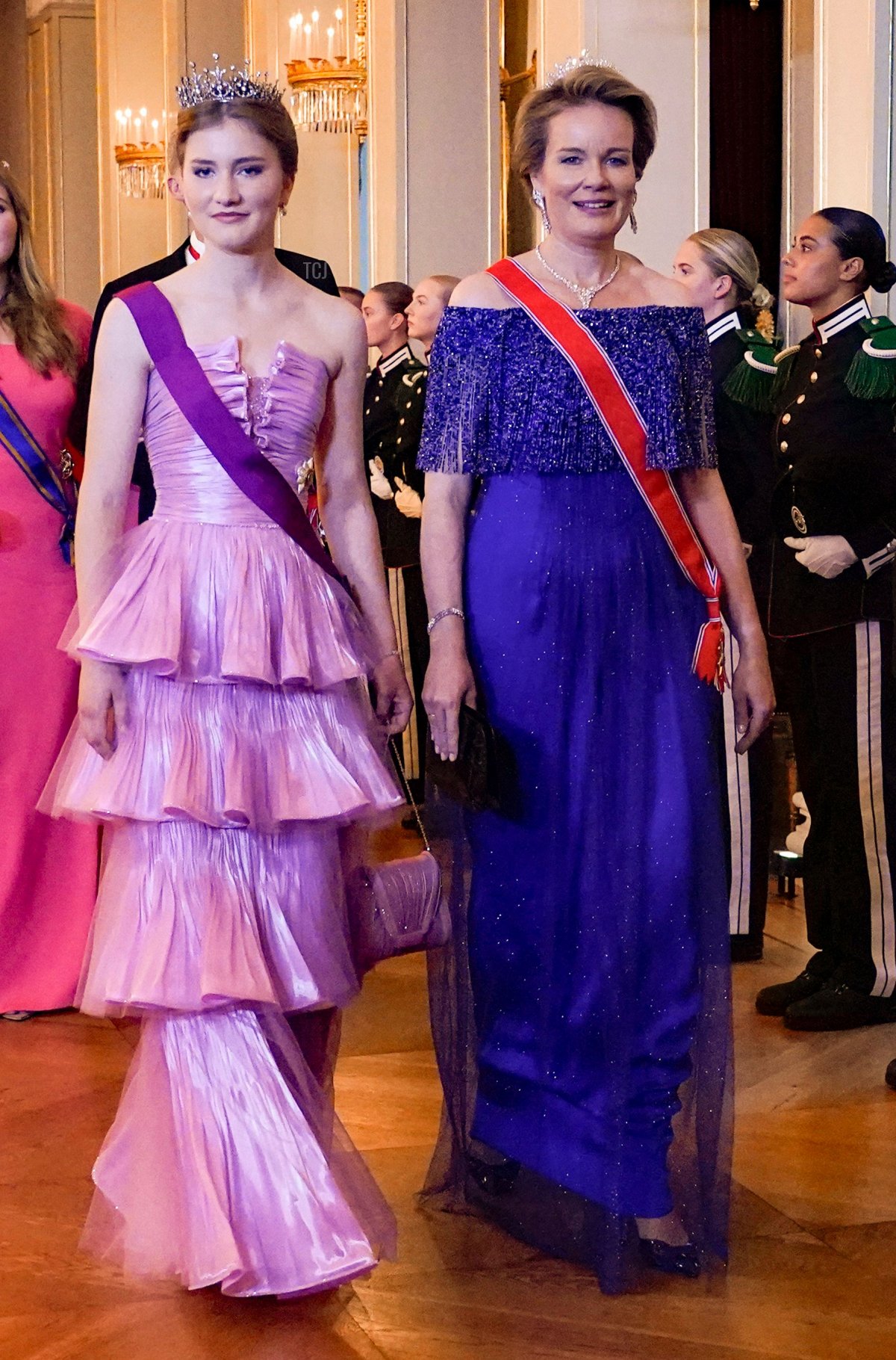 Princess Elisabeth of Belgium, who holds the title of Duchess of Brabant as heir to the Belgian throne, accompanied her mother, Queen Mathilde, to Princess Ingrid Alexandra of Norway’s birthday celebration gala in Oslo on Friday. Both women were glittering in Armani, but it was Elisabeth’s tiara that really set tongues wagging.