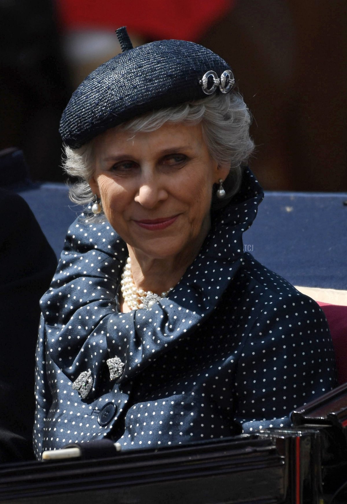 The third and final carriage featured the Duke and Duchess of Gloucester with Vice Admiral Sir Timothy Laurence (not seen here).