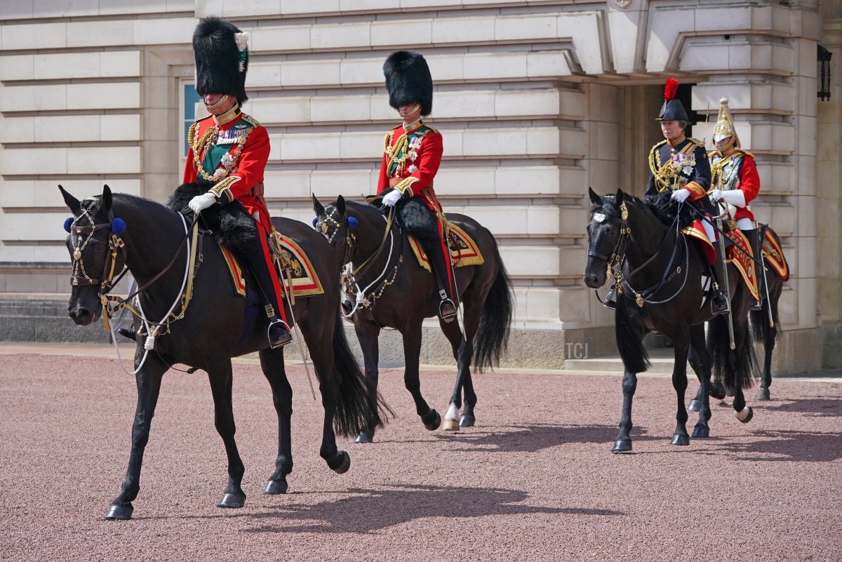 During the Trooping the Colour presentation at Horse Guards Parade, the Queen was represented by the Prince of Wales, who was accompanied by the Duke of Cambridge and the Princess Royal.