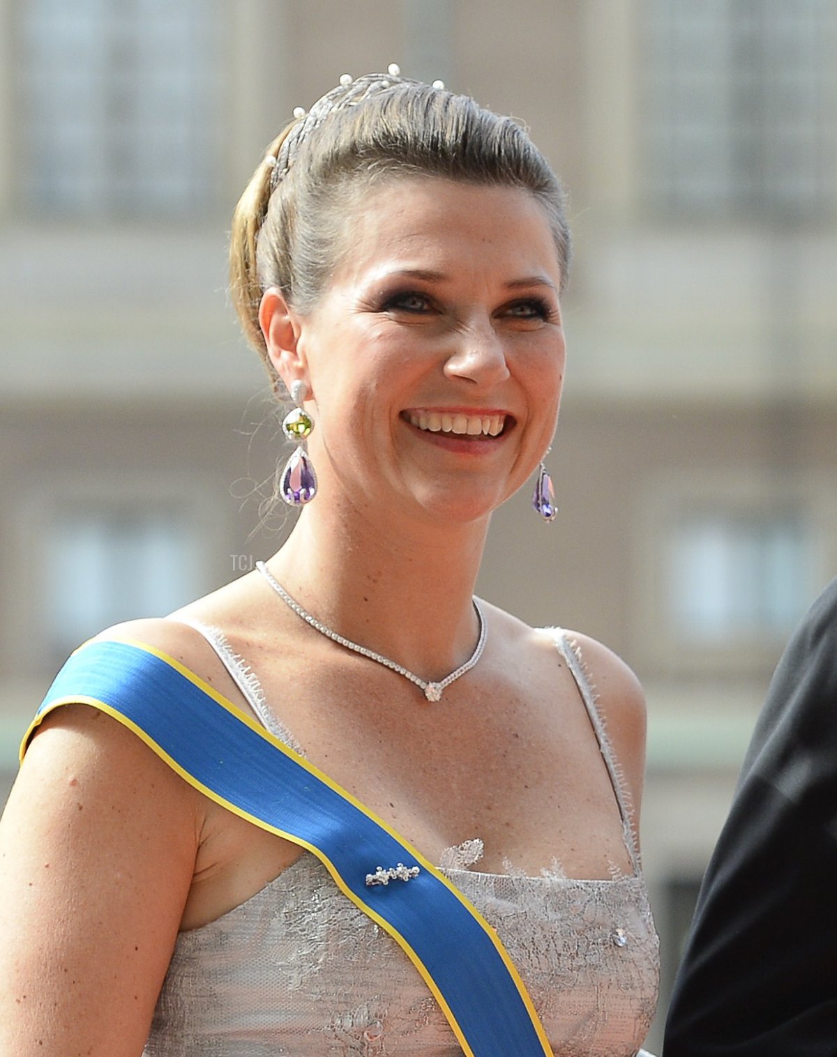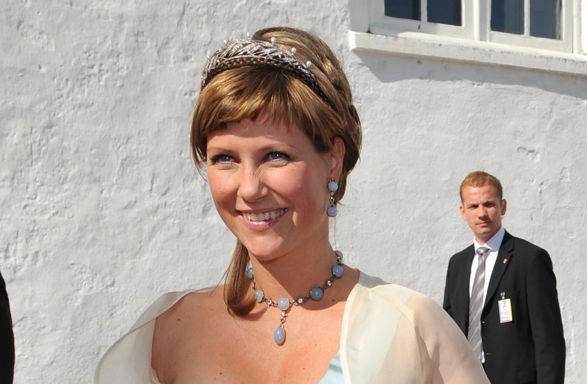 Here, Märtha Louise wears the tiara for a diplomatic event: a gala dinner during a state visit from Queen Beatrix of the Netherlands in 2010. (She’s standing beside her aunt, Princess Astrid, who wears Queen Alexandra’s Turquoise Circlet.) But because Märtha Louise is not a working member of the Norwegian royal family, but rather has a private career, she’s more frequently spotted wearing the tiara at family events like birthday and wedding celebrations.